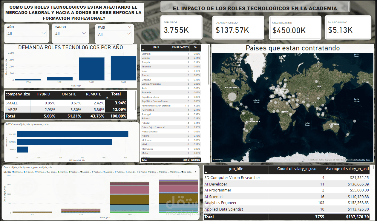 Requested to make a dashboard that represent the average salaries of versatile professions around the world