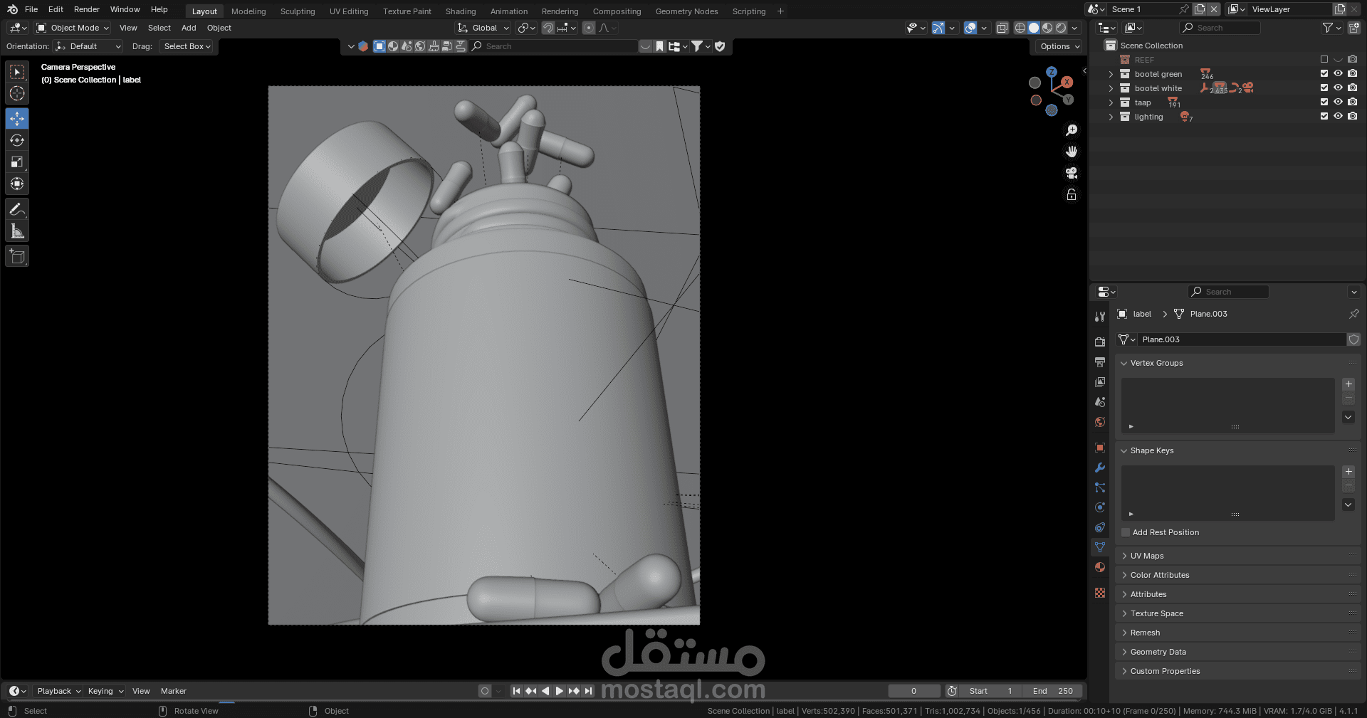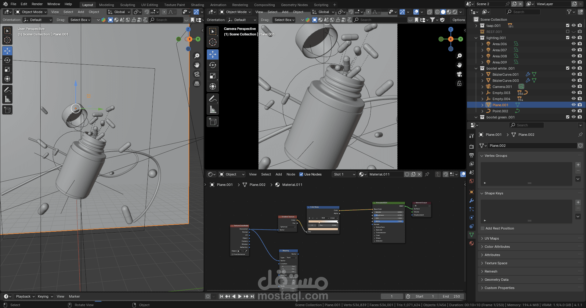 Realistic shaders were created for the plastic bottle and labels.