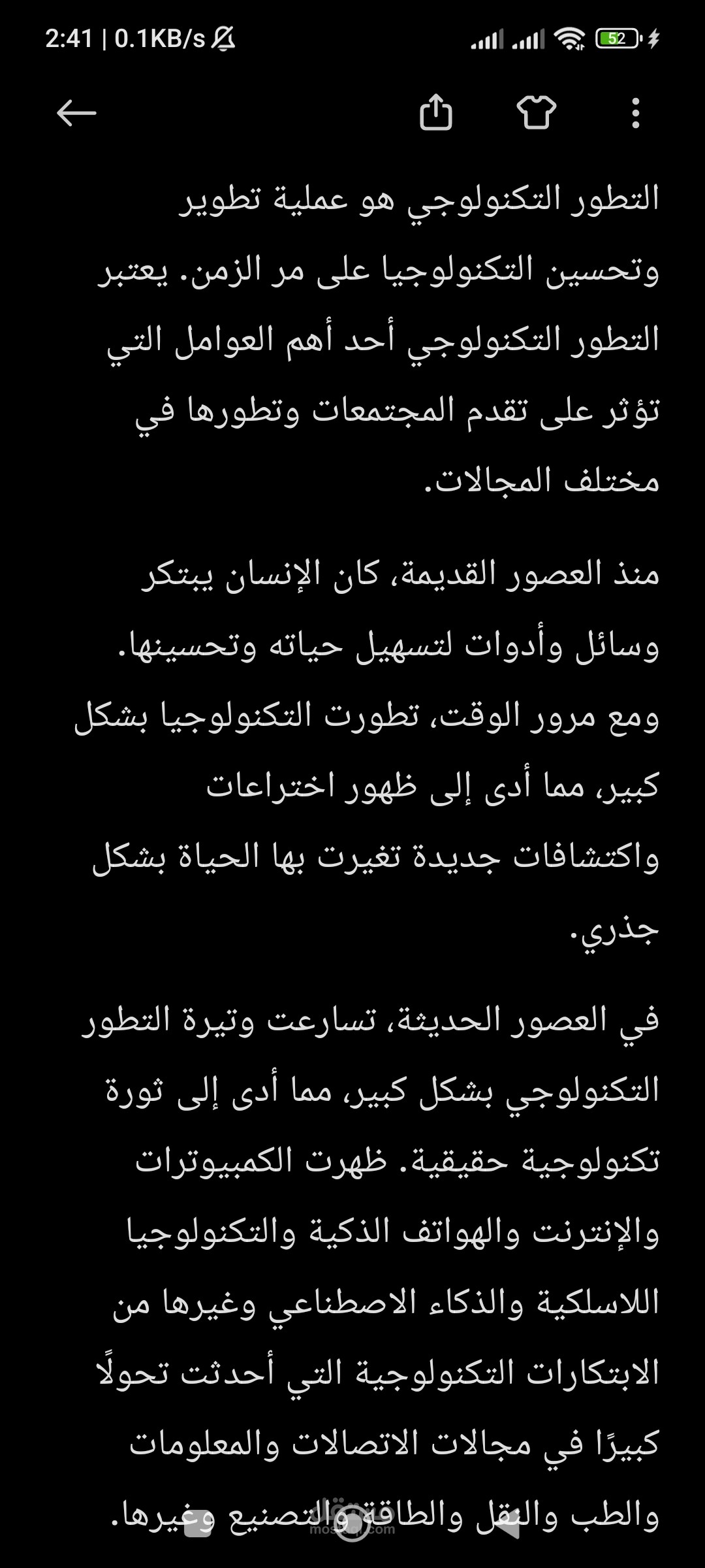 باختصار، التطور التكنولوجي يعد عملية مستمرة ومتجددة تؤثر في جميع جوانب الحياة البشرية. يجب علينا استخدام التكنولوجيا بشكل حكيم ومسؤول لتعزيز تقدم المجتمعات وتحسين جودة الحياة للجميع.