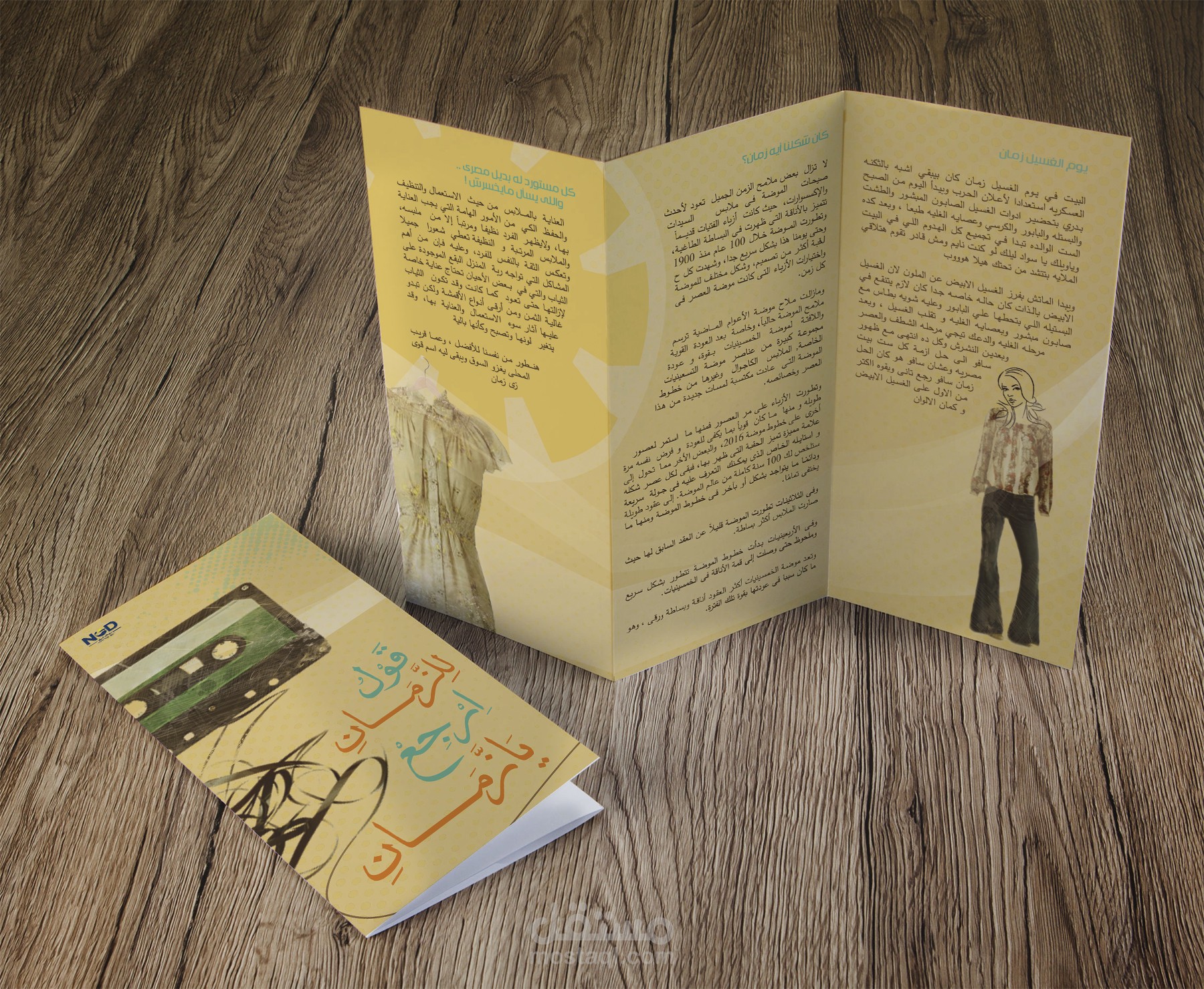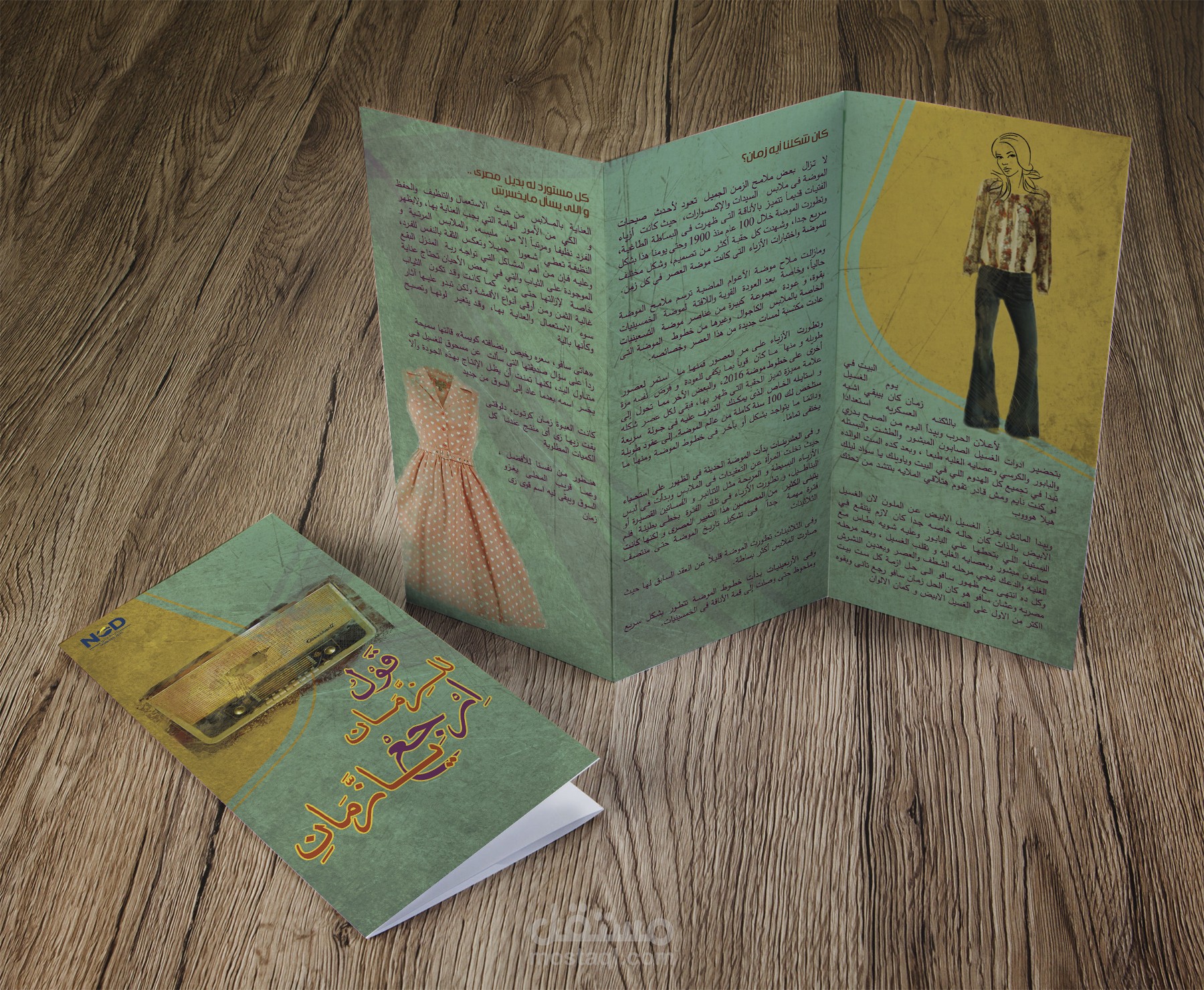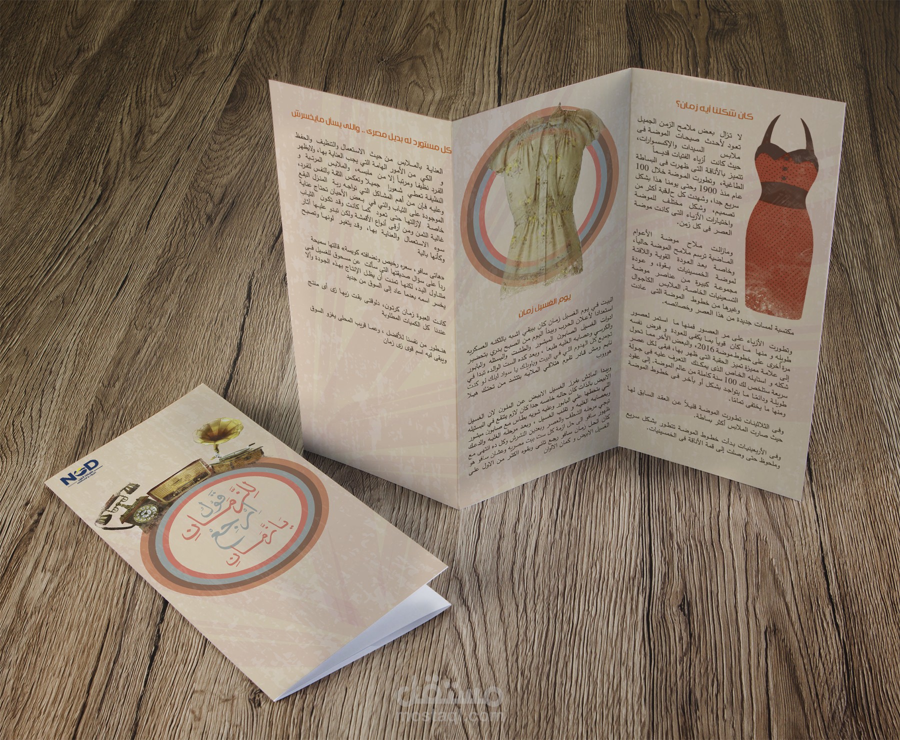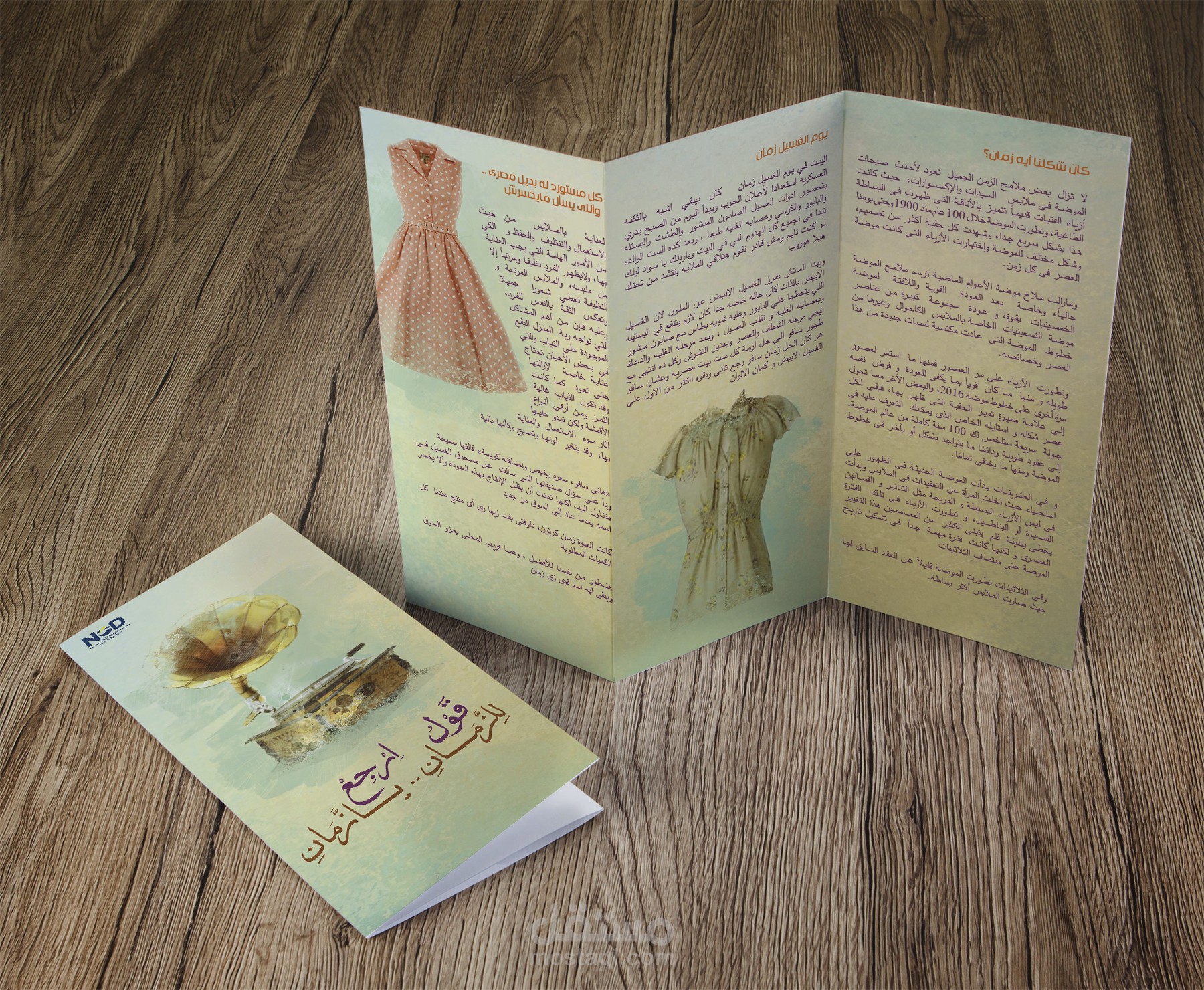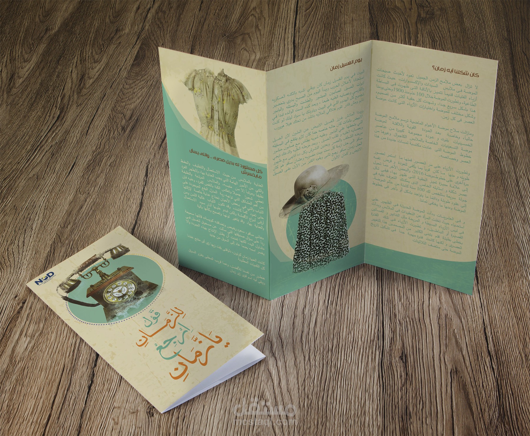 انطلقت من هذا المفهوم لتصميم برشورات للحملة الإعلانية باستخدام لوحة ألوان مستوحاة من الماضي — درجات البيج، البني، والعنبر — التي تمنح إحساسًا بالدفء والحنين.