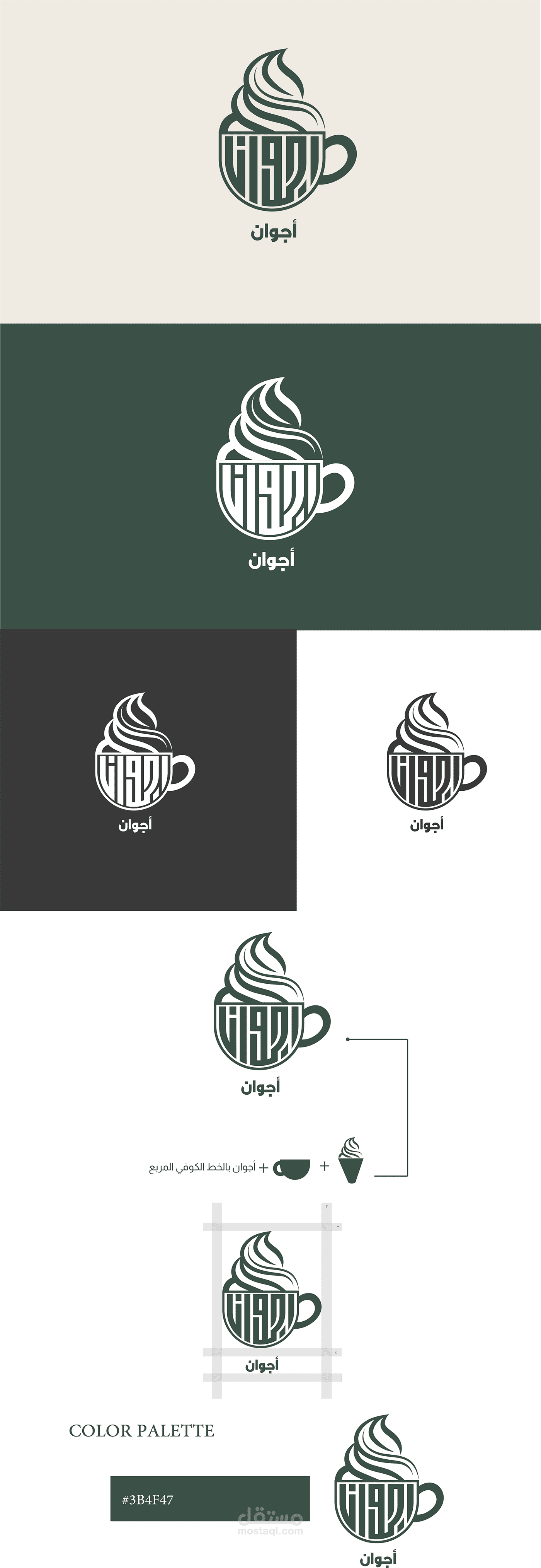 لوجو وشعار لقهوة اجوان تم تصميمه بواسطة برنامج الالستريتور خلال 48 ساعة