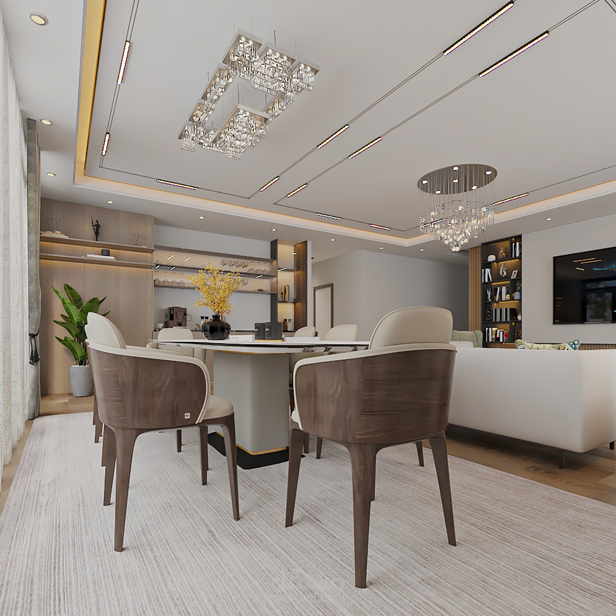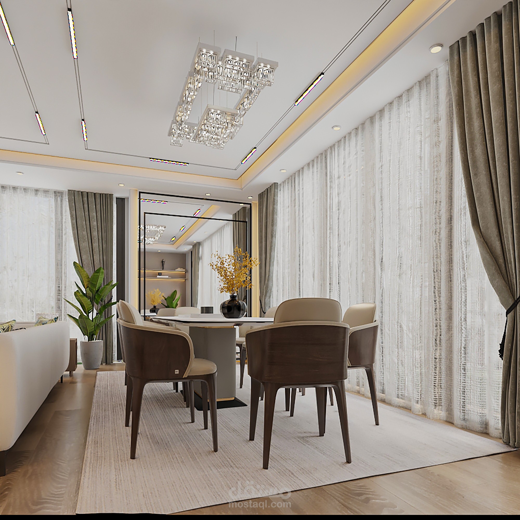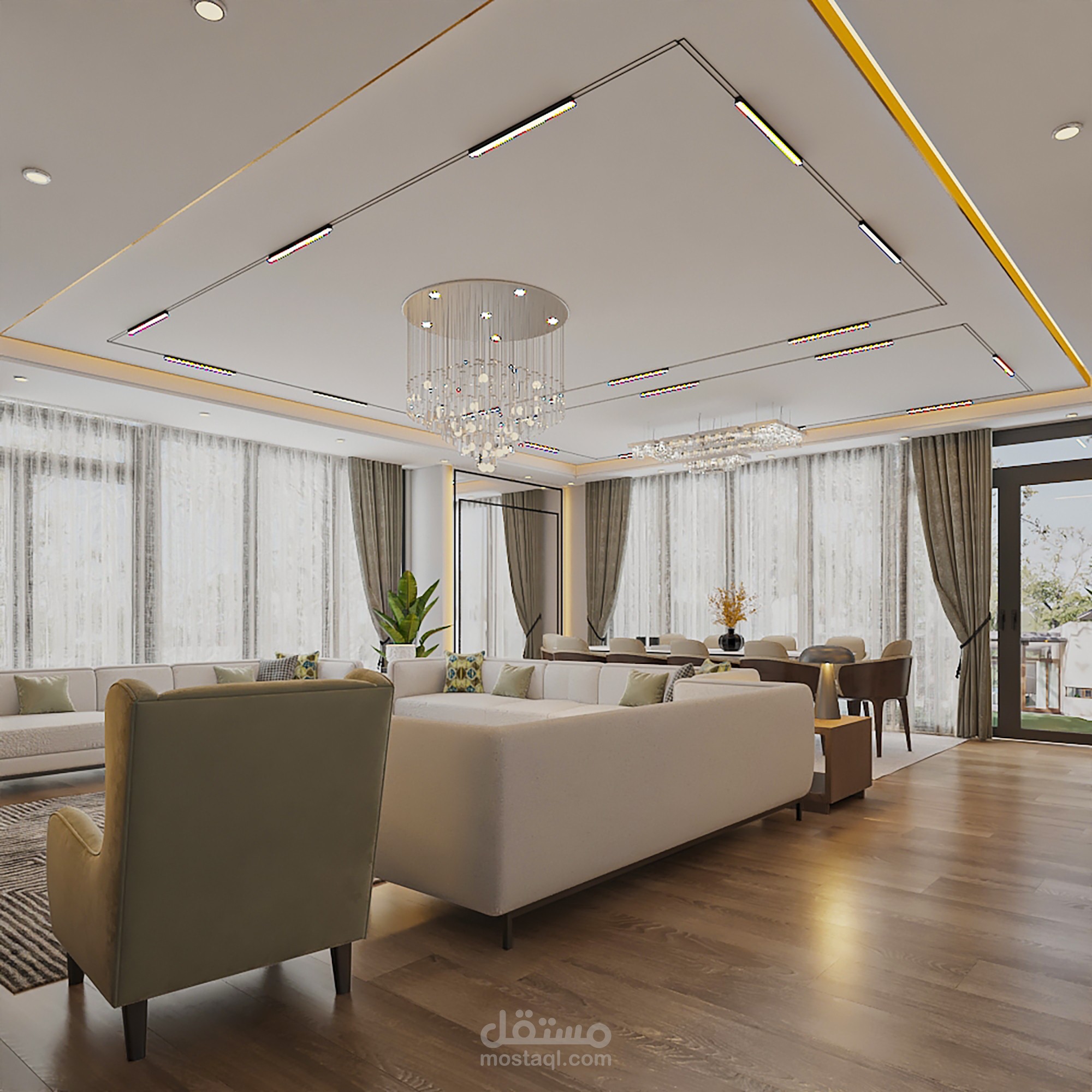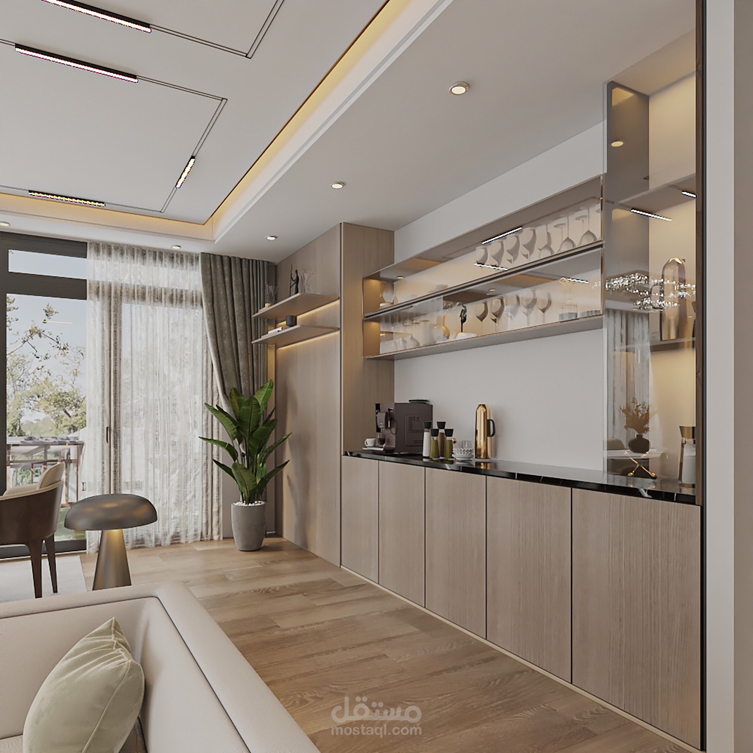 المواد المستخدمة : المواد الاساسية بناء على طلب العميل وباقي المواد بما تتناسب مع الفراغ