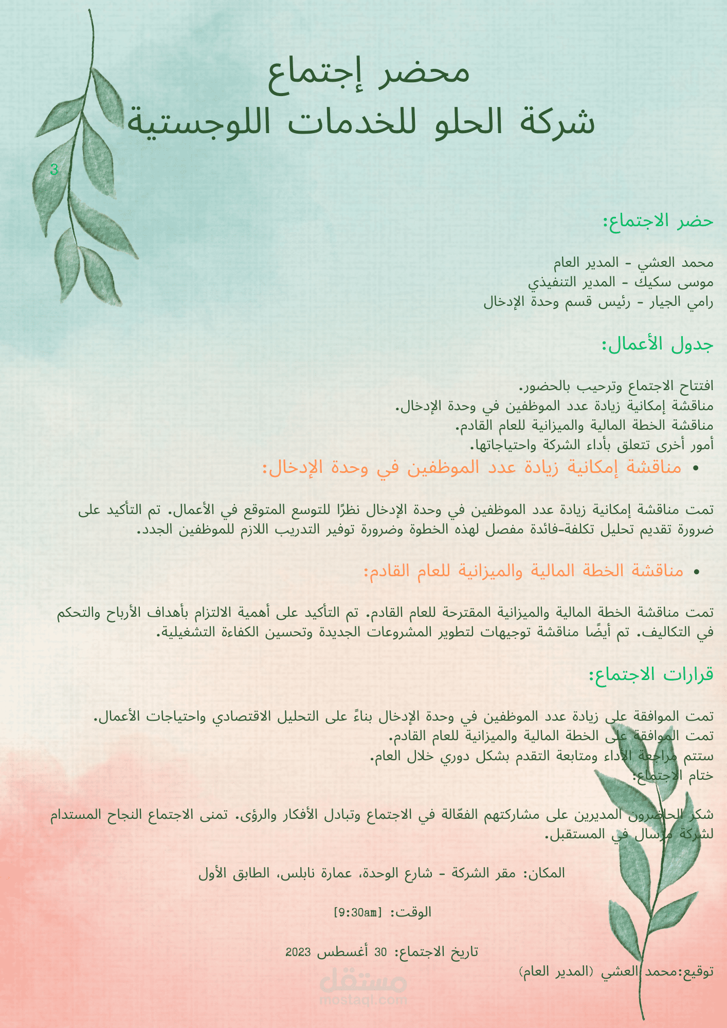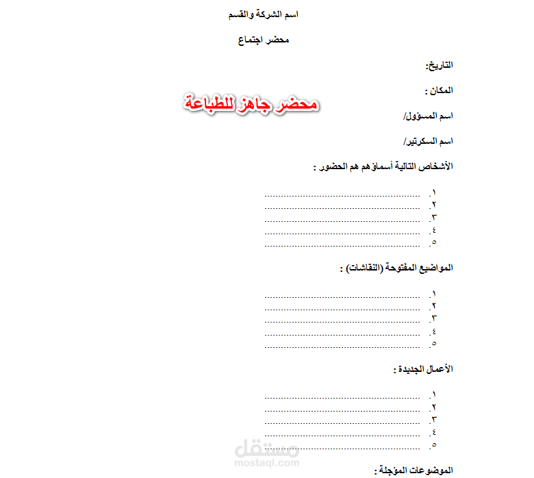 خطوات تنفيذ كتابة وتصميم محضر اجتماع لشركة تقدم خدمات لوجستية قمت بتنفيذها مسبقا على شكل نقاط: