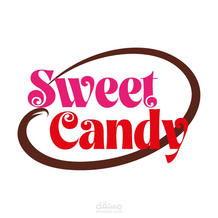 تم وضع اسم العلامة التجارية "Sweet Candy" بأحرف زاهية ولذيذة، يمكن تصميمه بخطوط منحنية تشبه الحلوى. هذا يساعد في إبراز اسم المحل وإعطاء اللوجو هويته المميزة.
