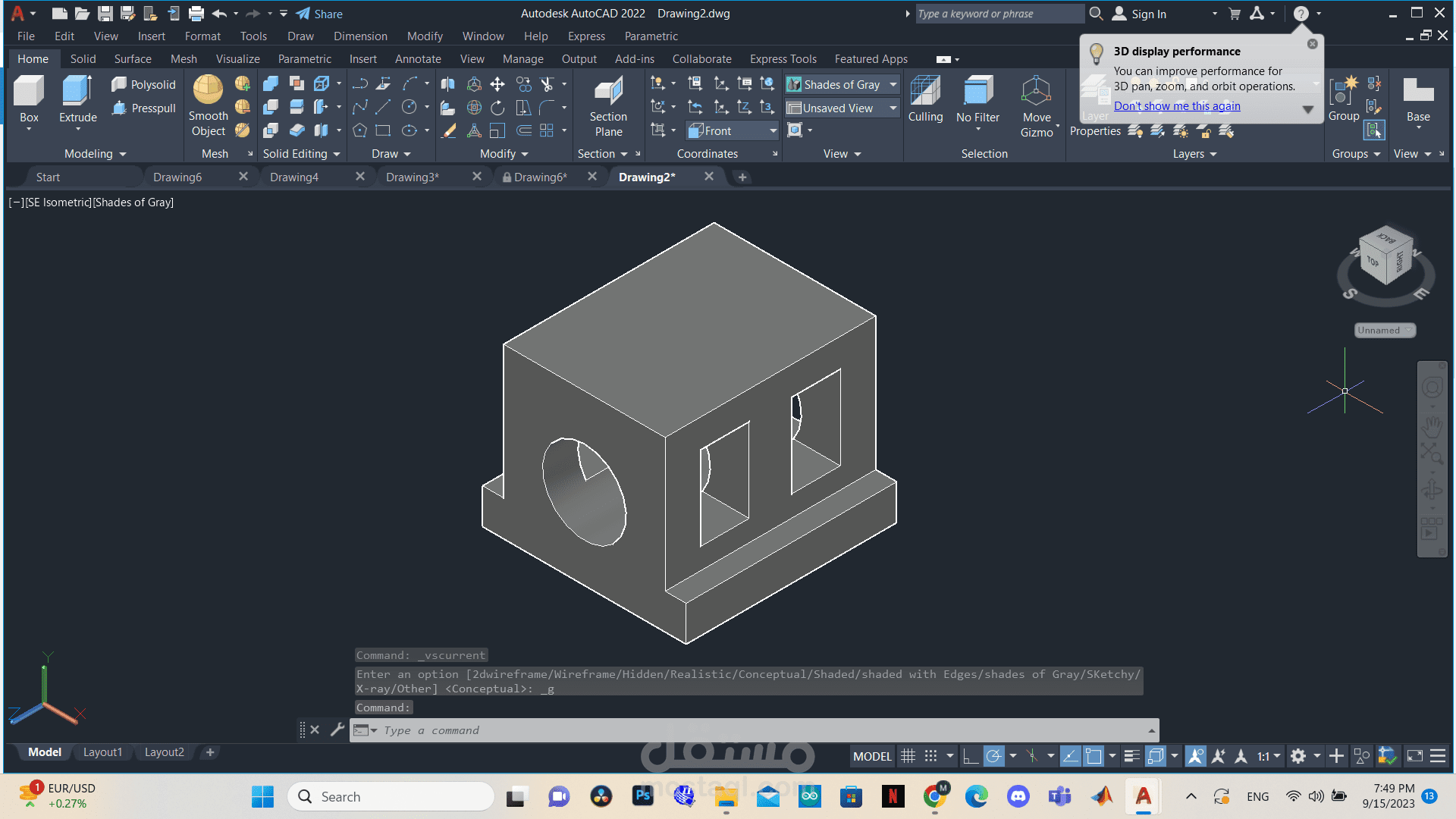 اقوم برسم مجسمات 2D و 3D على برنامج اوتوكاد