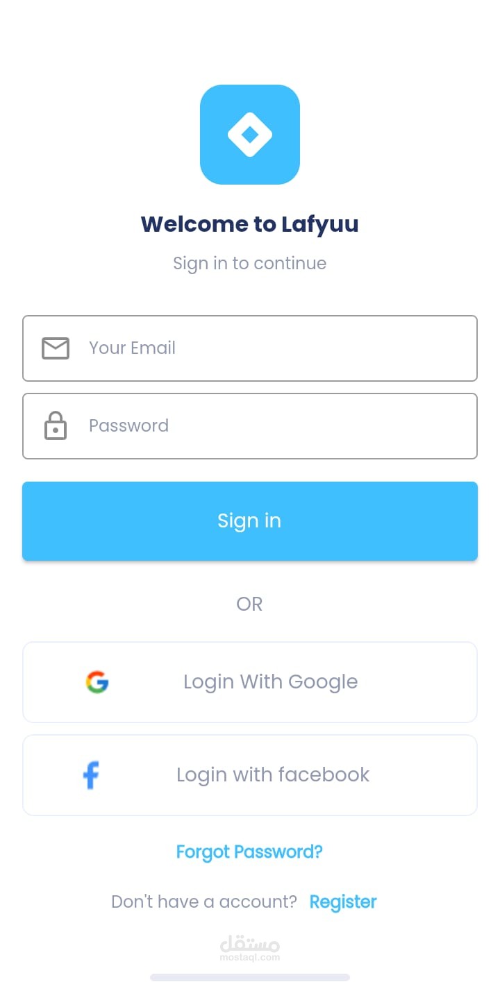 يتكون التطبيق من Splash screen عند بدايه تشغيل التطبيق