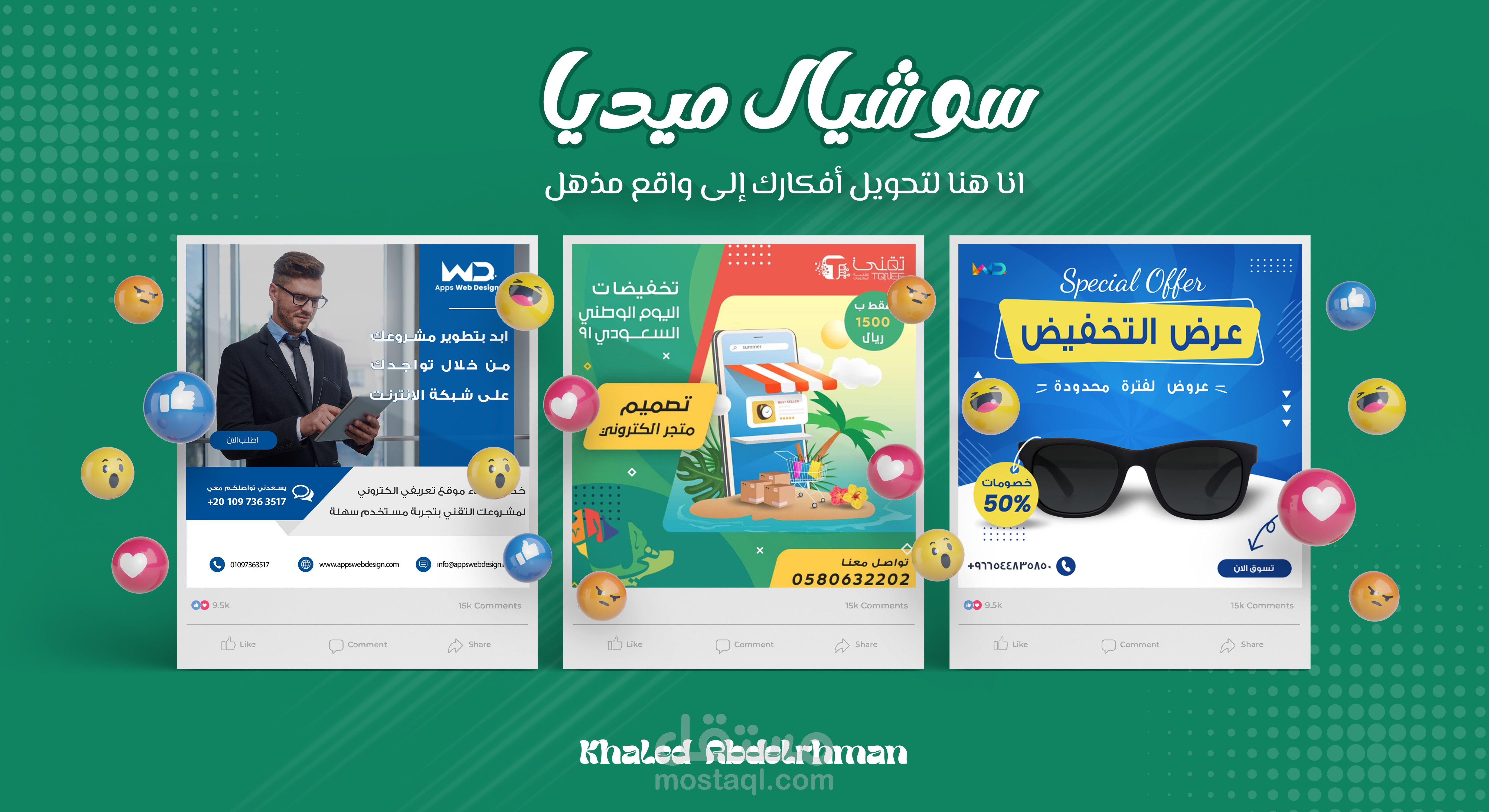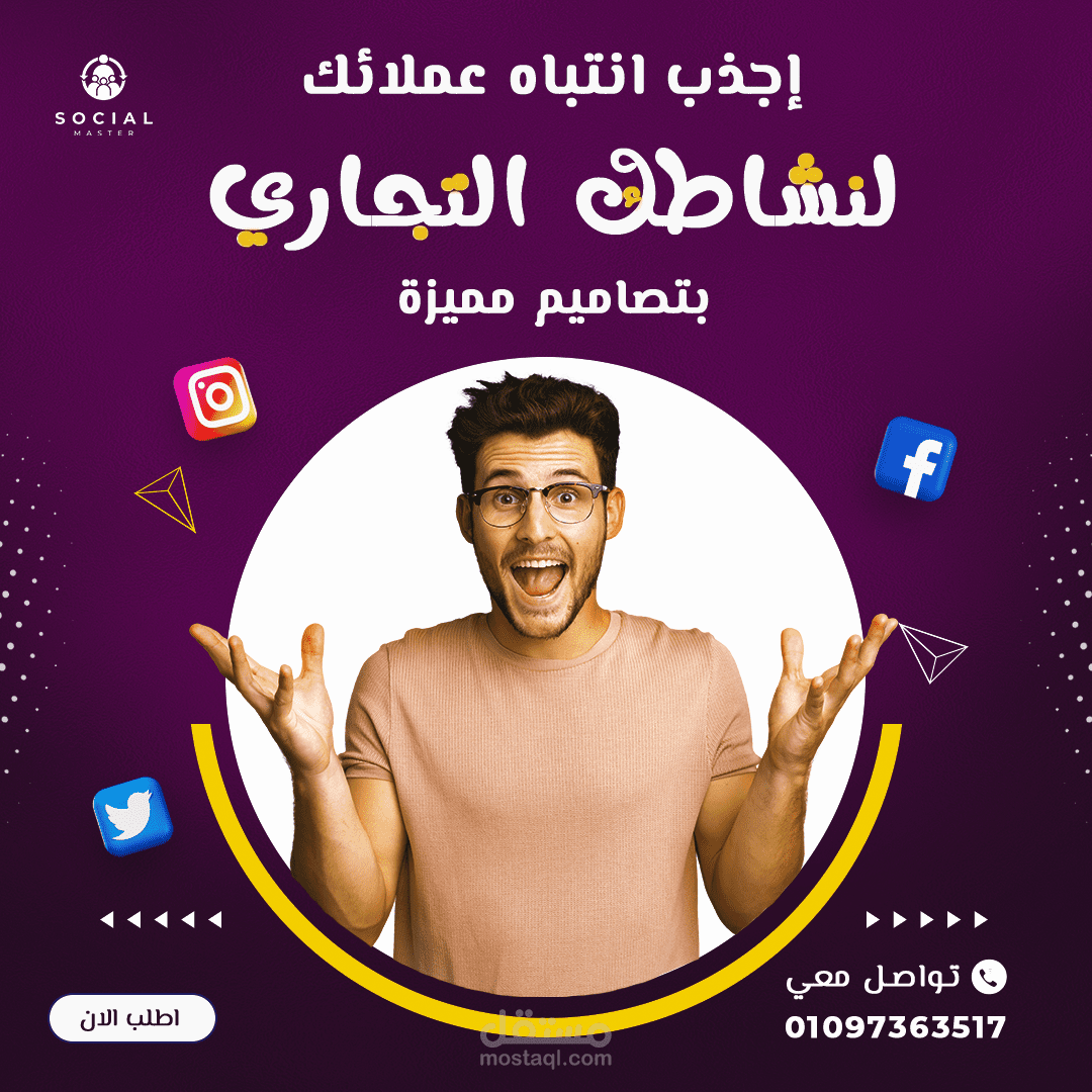 اجعل منشوراتك على وسائل التواصل الاجتماعي تتألق مع تصميم بوستات سوشيال ميديا مميزة تعبر عن هويتك التجارية وتلتقط انتباه الجمهور.
