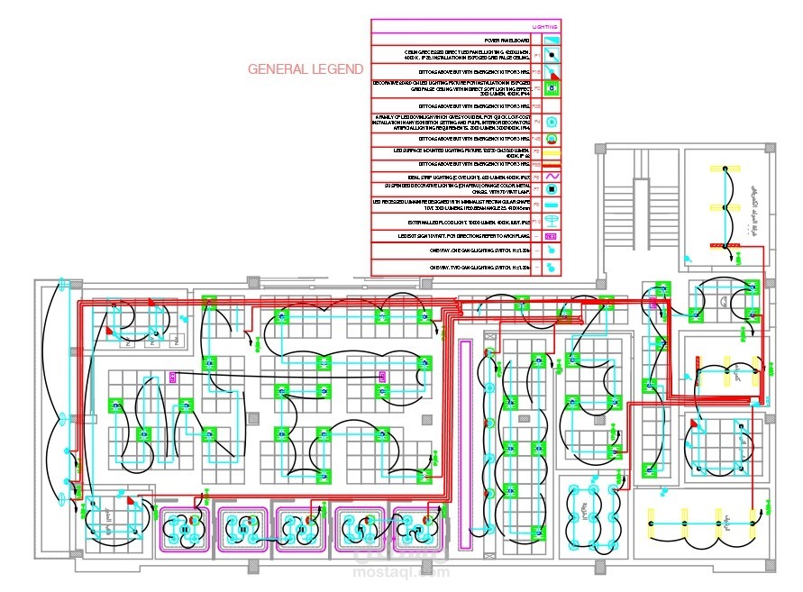 مخططات خطية واحدة للأنظمة الكهربائية وأنظمة الهواء في أوتوكاد.
