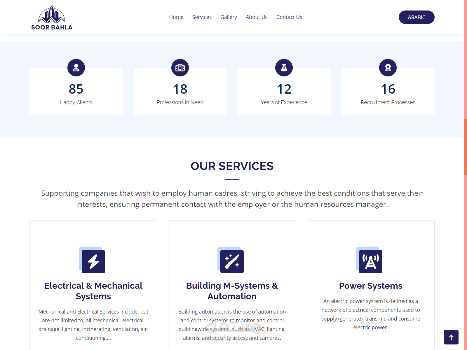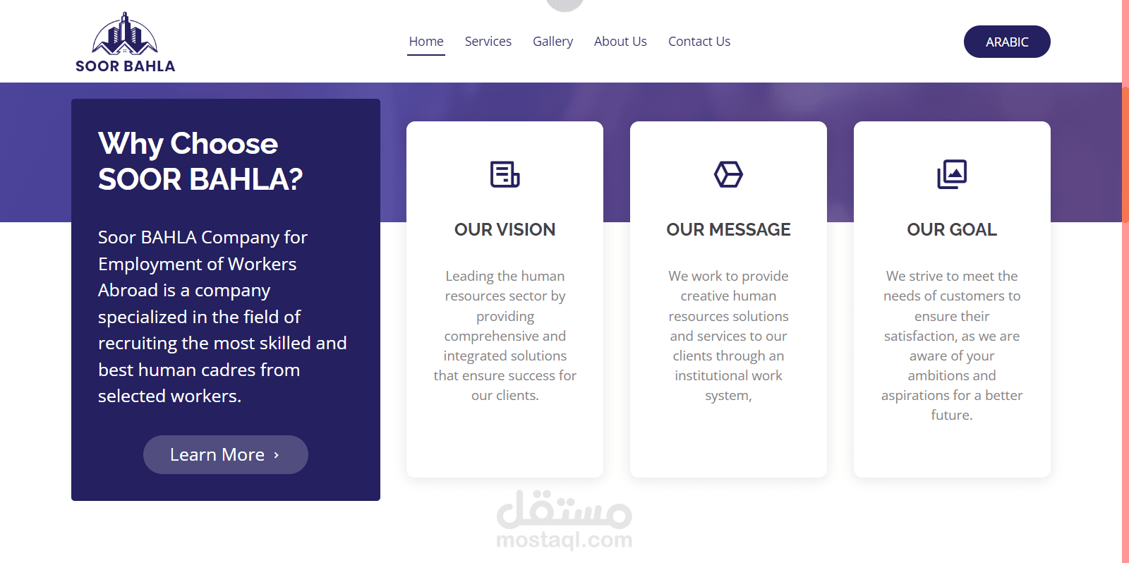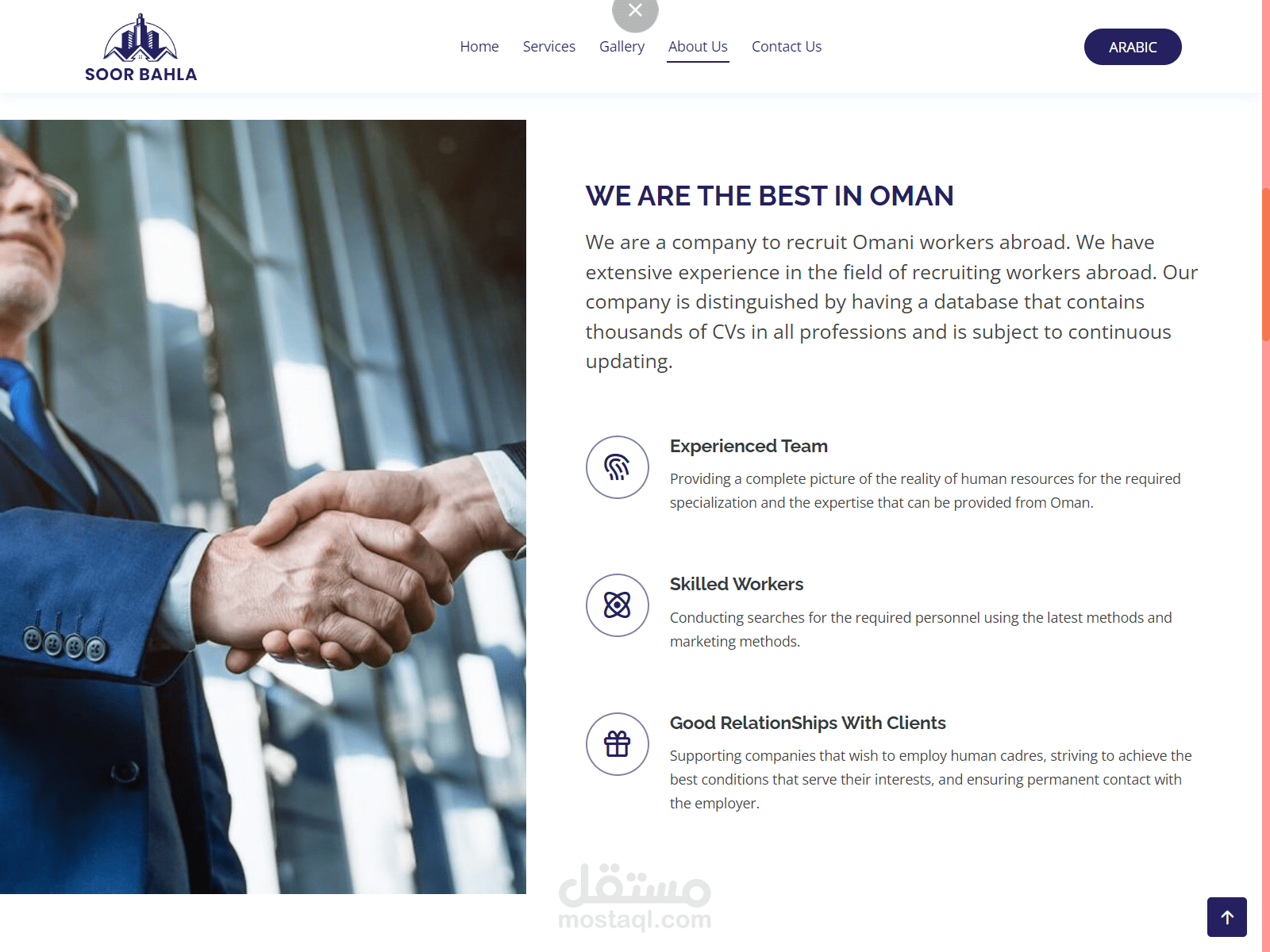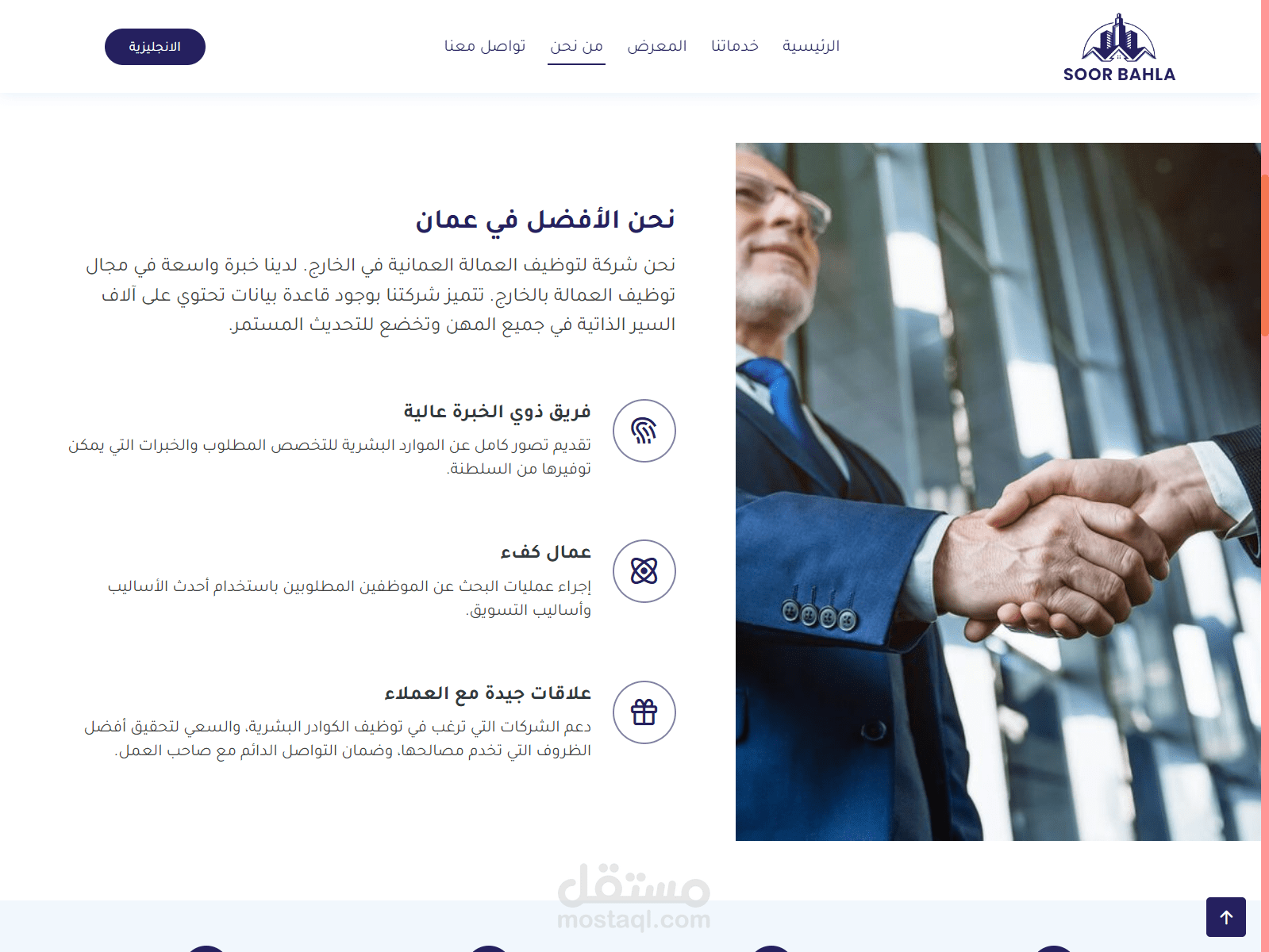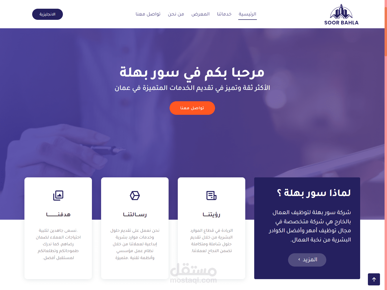 موقع ويب لشركة عمانية لتوظيف العمالة بالخارج بتصميم عصري وجذاب باللغتين العربية والانجليزية.. باستخدام