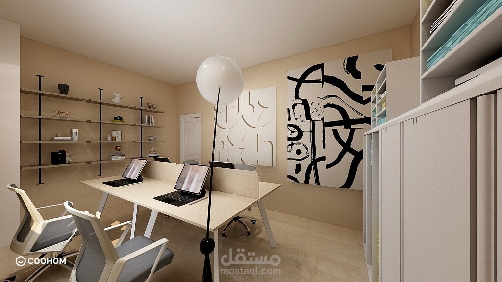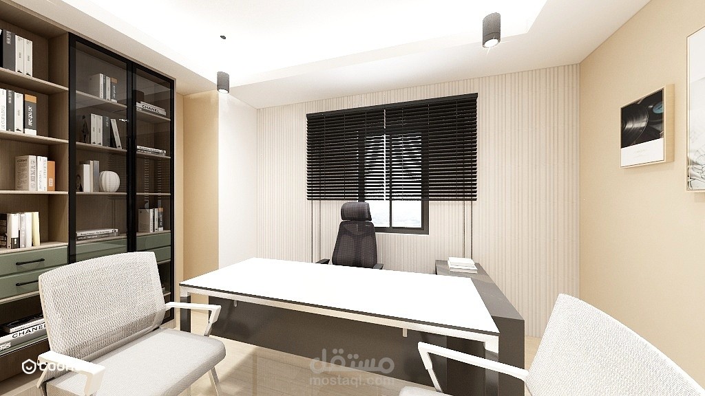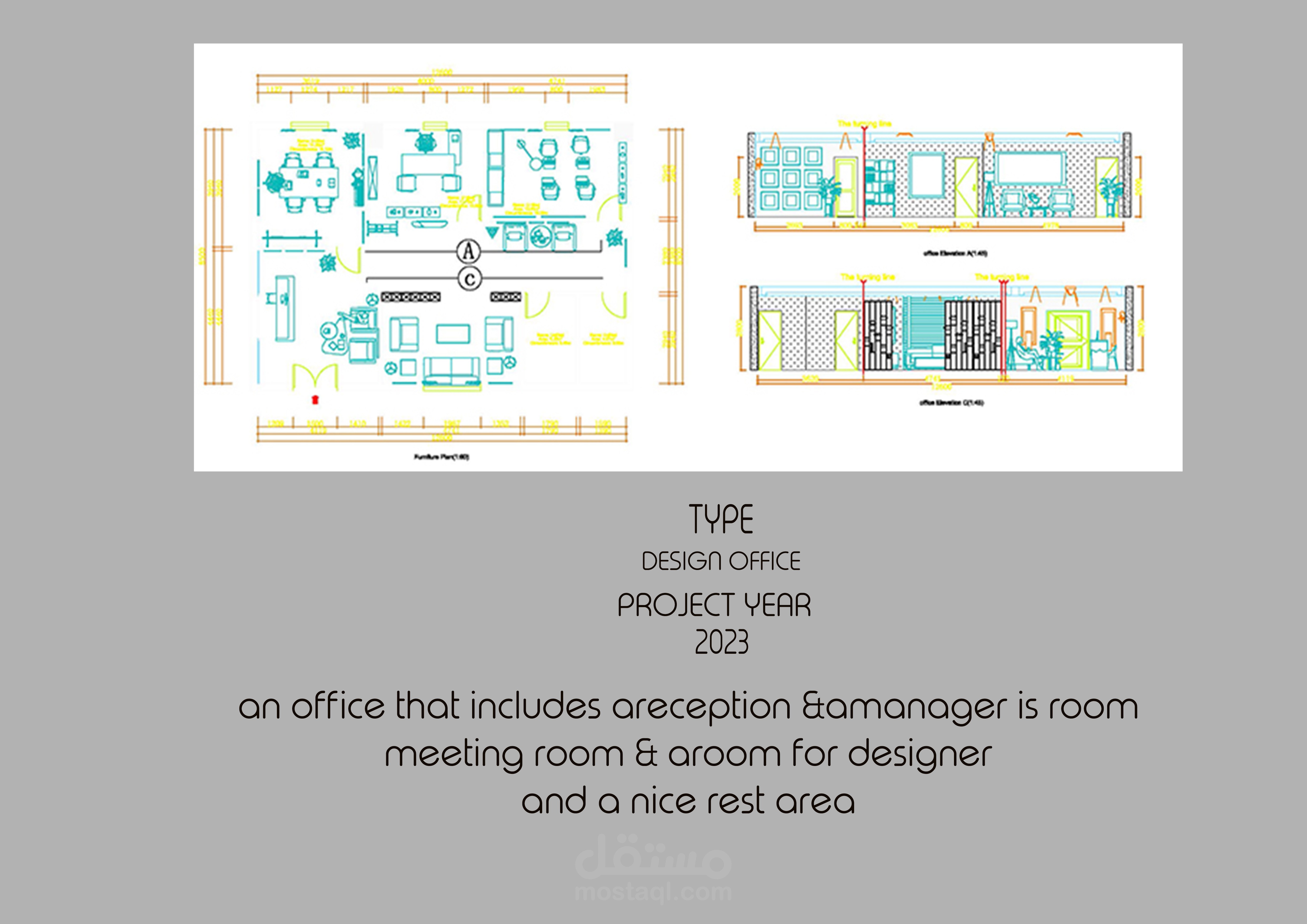 مكتب هندسي يضم ريسبشن وغرفه مدير وغرفه اجتماعات وغرفه للمهندسين واستراحه