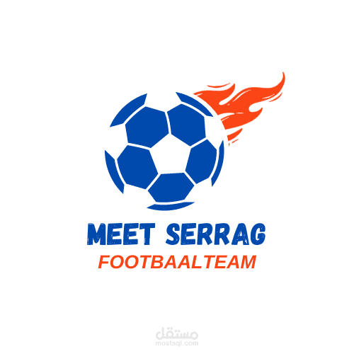 2.الاسم: تم وضع اسم النادي أو اختصاره في الشعاروهو كالاتي ( MEET SERAG ) . وايضا استخدام ( FOOTBALL TEAM ) وتم تصميم النص بشكل جميل ومميز بإستخدام اللونين الازرق والربتقالي ليكون معروفًا وسهل التعرف عليه.