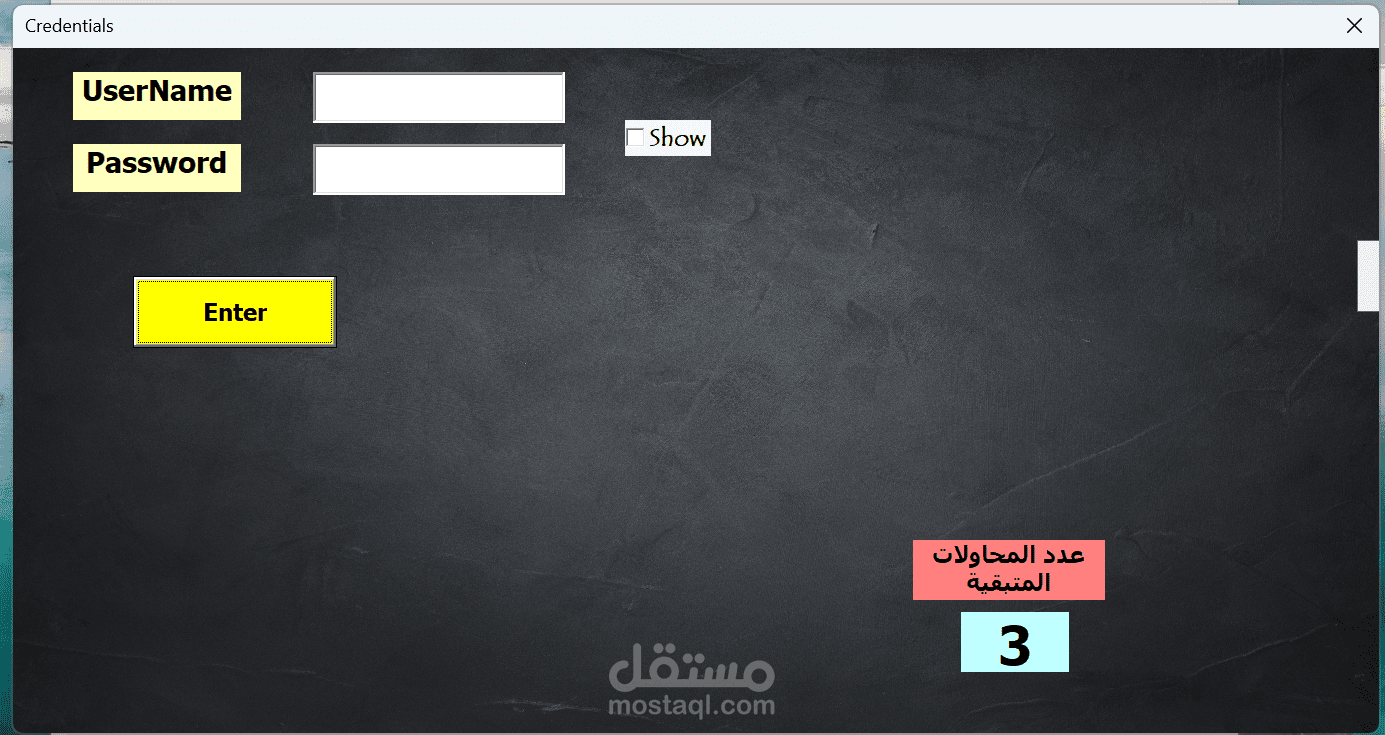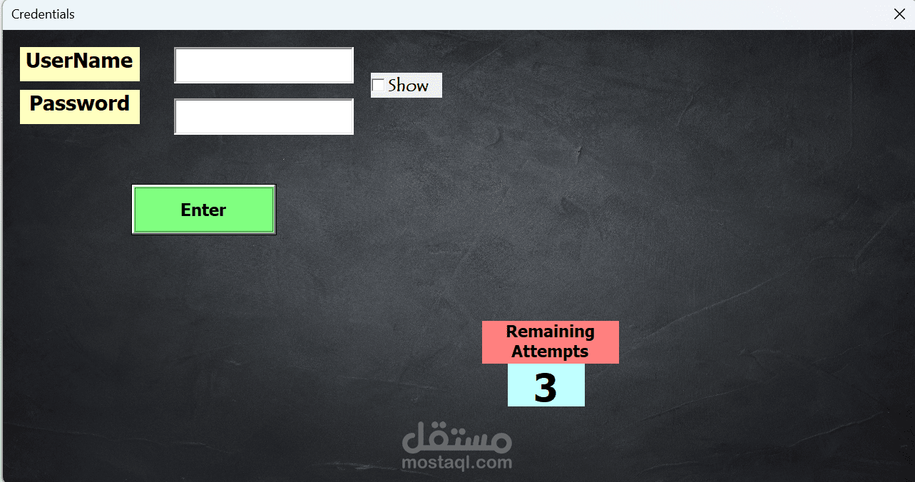 يتم توفير واجهة تسجيل الدخول للموظفين بمستخدم وكلمة مرور .