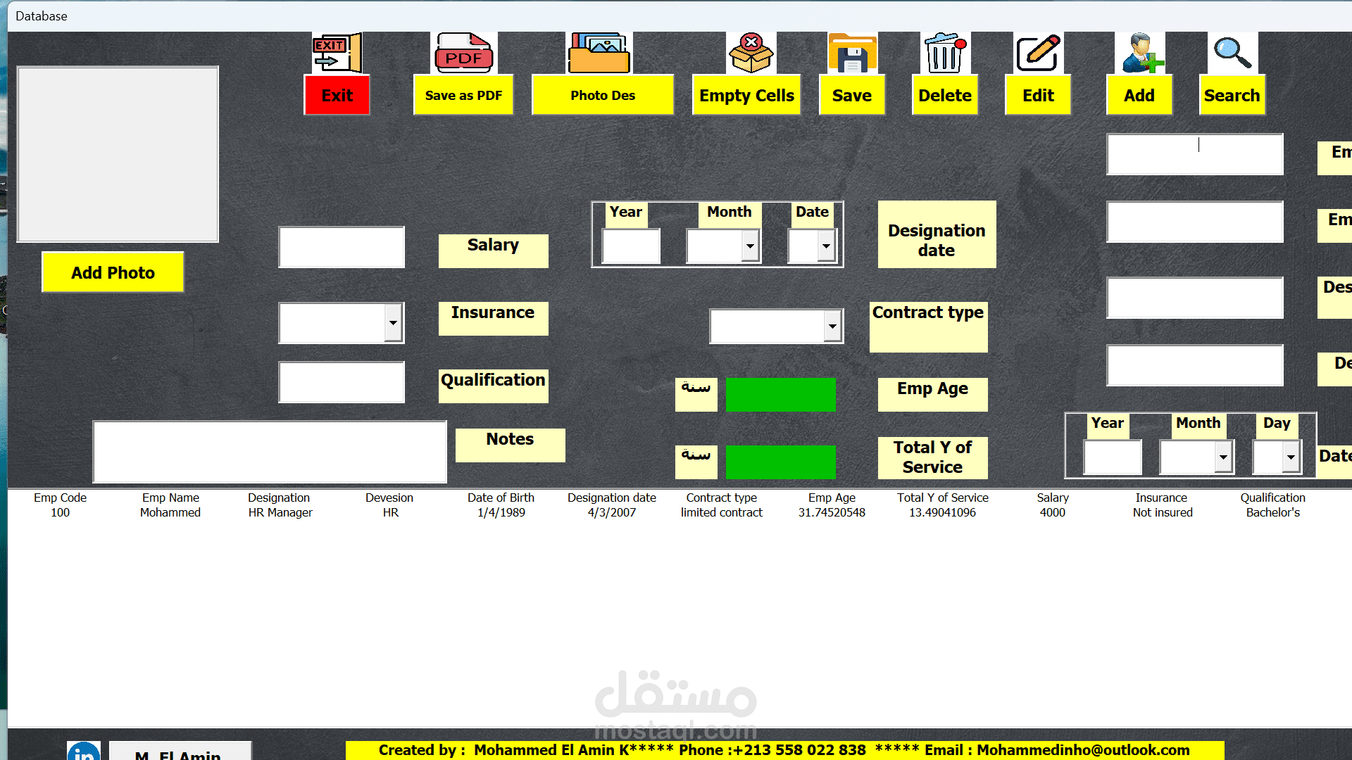 قاعدة بيانات إكسل المطورة باستخدام الماكروهات ولغة VBA بالعربي و الانجليزي