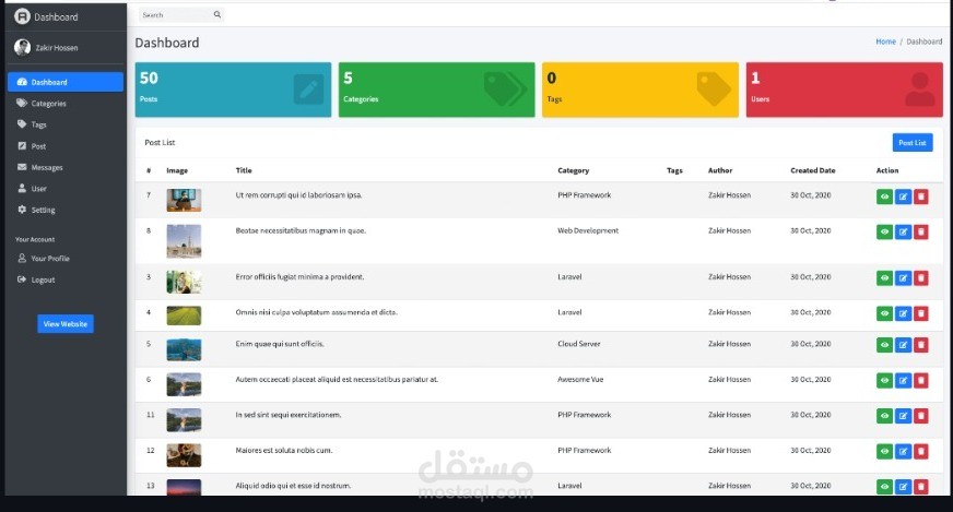 يمكن للمستخدمين تحديث معلوماتهم الشخصية وتعديل الصور الشخصية وتغيير كلمة المرور من خلال لوحة التحكم. يتم تحديث المعلومات المحدثة في قاعدة البيانات.