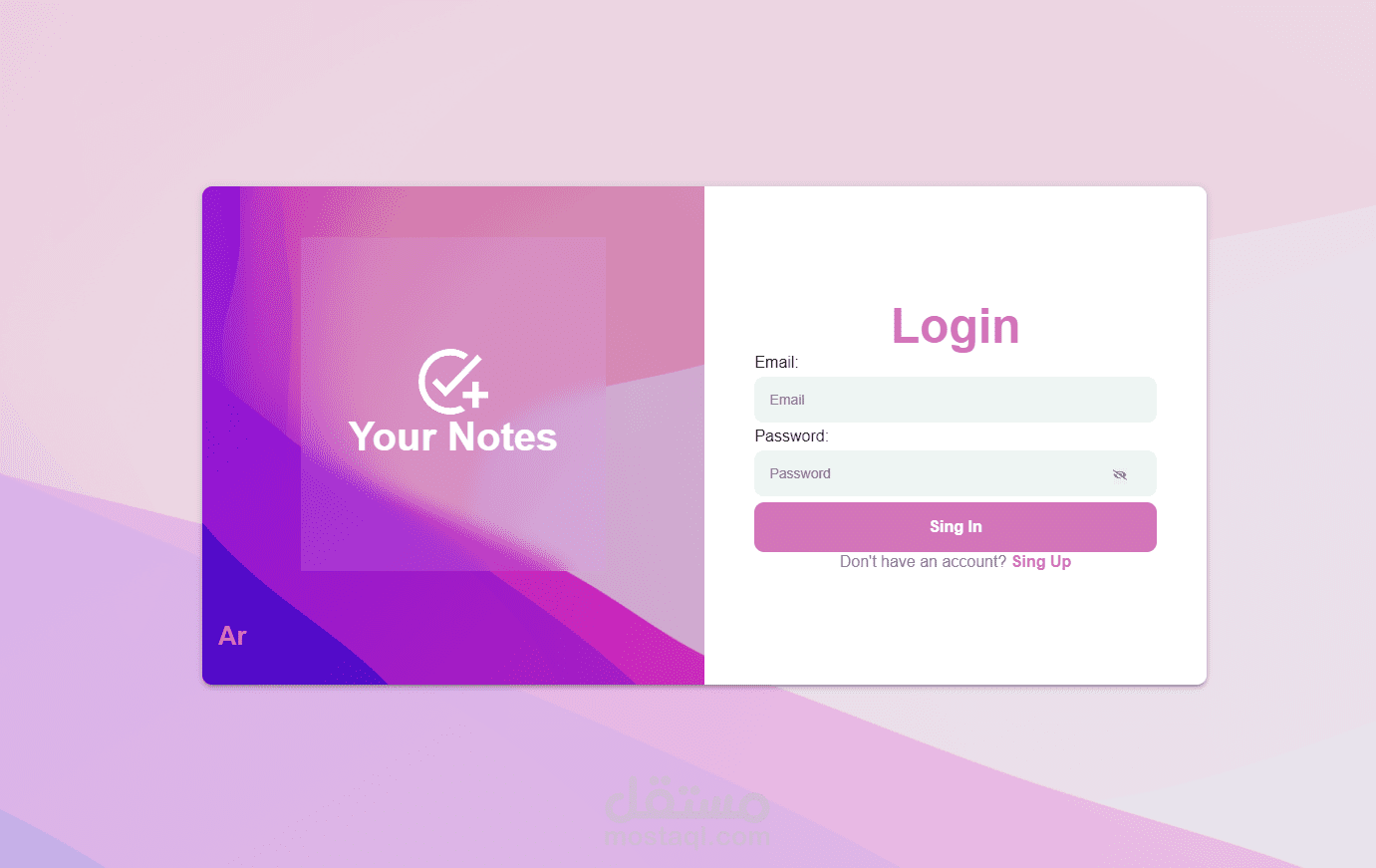 مع صفحات لاضافة حسابات وايضا تسجيل دخول وتعديل بيانات المستخدم.