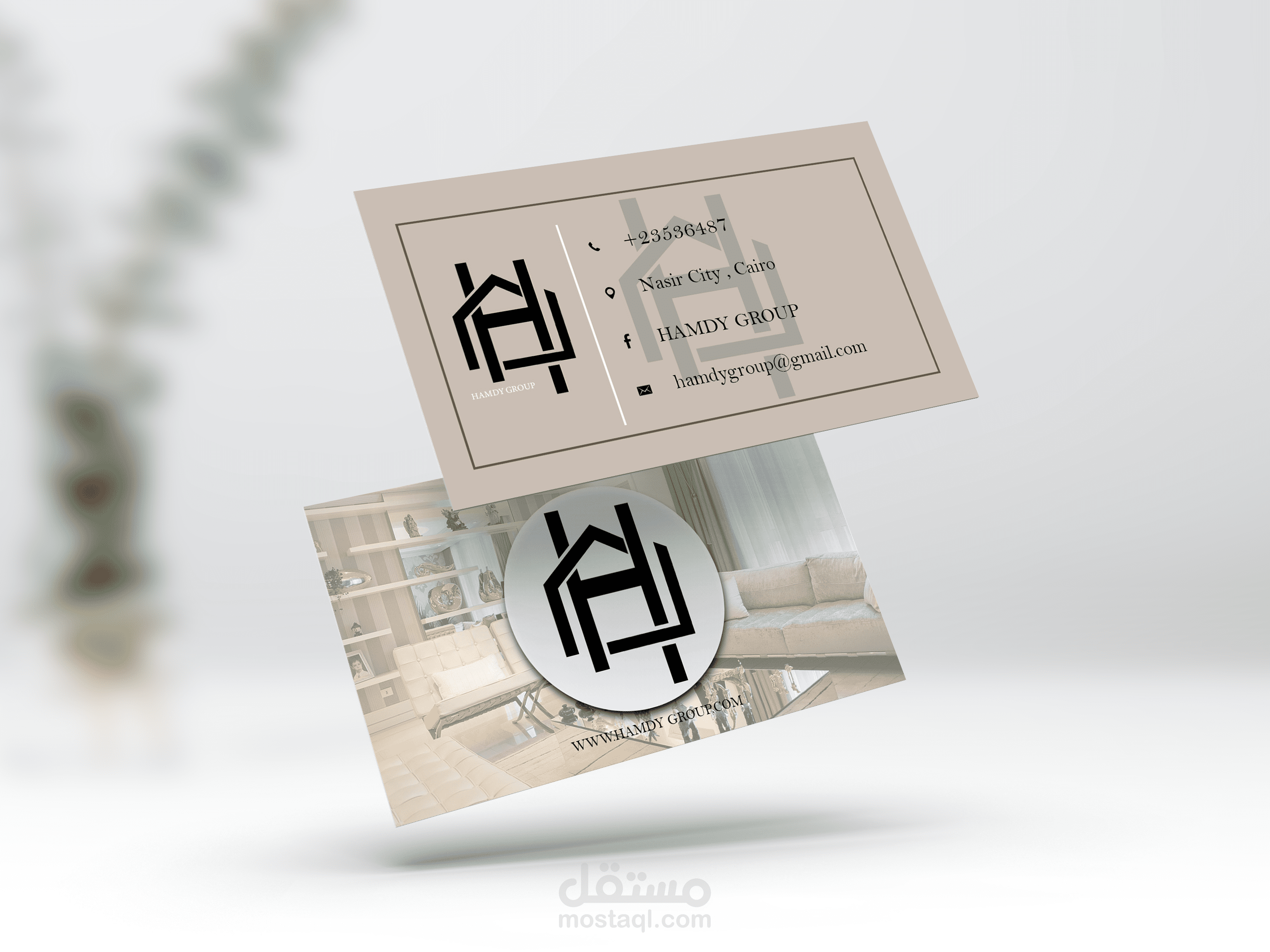 لوجو لشركة اثاث باسم Hamdy Group تم دمج حرف ال H مع رسمة منزل