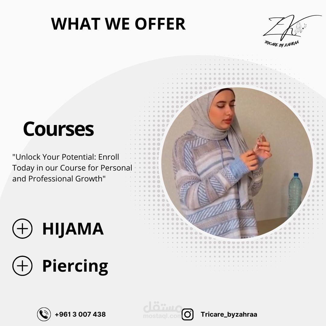 عرض فوائد علاج الطبيب الطبيعي، مثل تخفيف الألم وإعادة التأهيل وتحسين الحركة. إبراز الخبرة والمؤهلات للطبيب الطبيعي. تقديم معلومات حول أنواع خدمات علاج الطبيب الطبيعي المقدمة. عرض فنية ومهارة عمليات الثقب في الجسم. إبراز تدابير السلامة والنظافة التي يتم اتخاذها أثناء عملية الثقب. عرض تشكيلة واسعة من خيارات الثقب المتاحة.