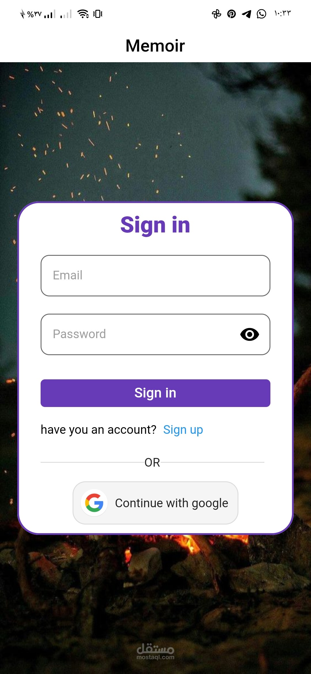 هذا تطبيق يمكن المستخدم ان يقوم بانشاء حساب وتسجيل الدخول وخروج ويمكنه ايضا تسجيل الدخول عن طريق جوجل