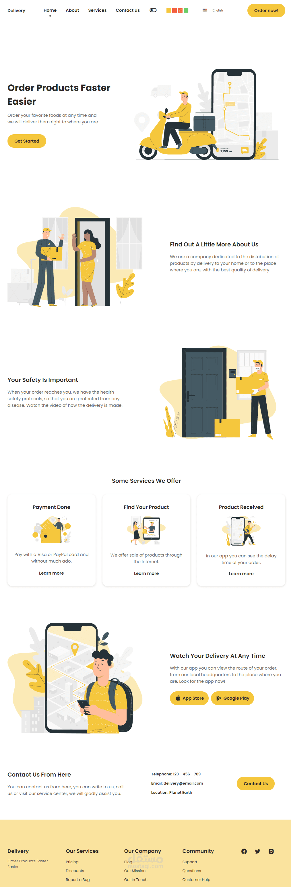 مشروع إنشاء وتصميم صفحة هبوط لموقع توصيل طلبات متجاوبة مع جميع الشاشات بإستخدام React | تصميم موقع التسليم