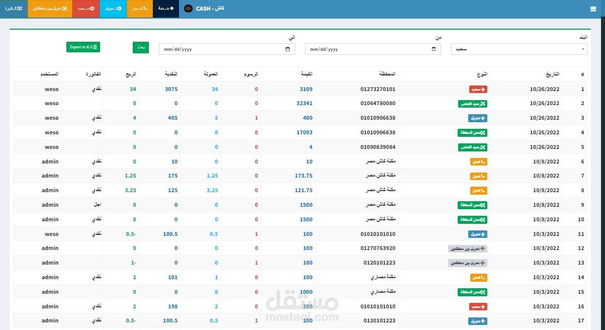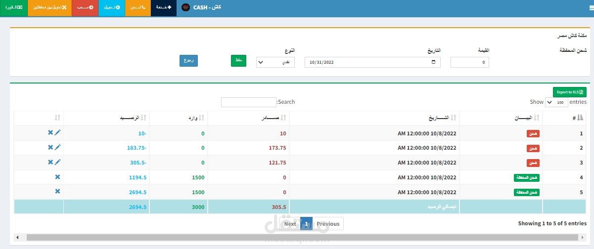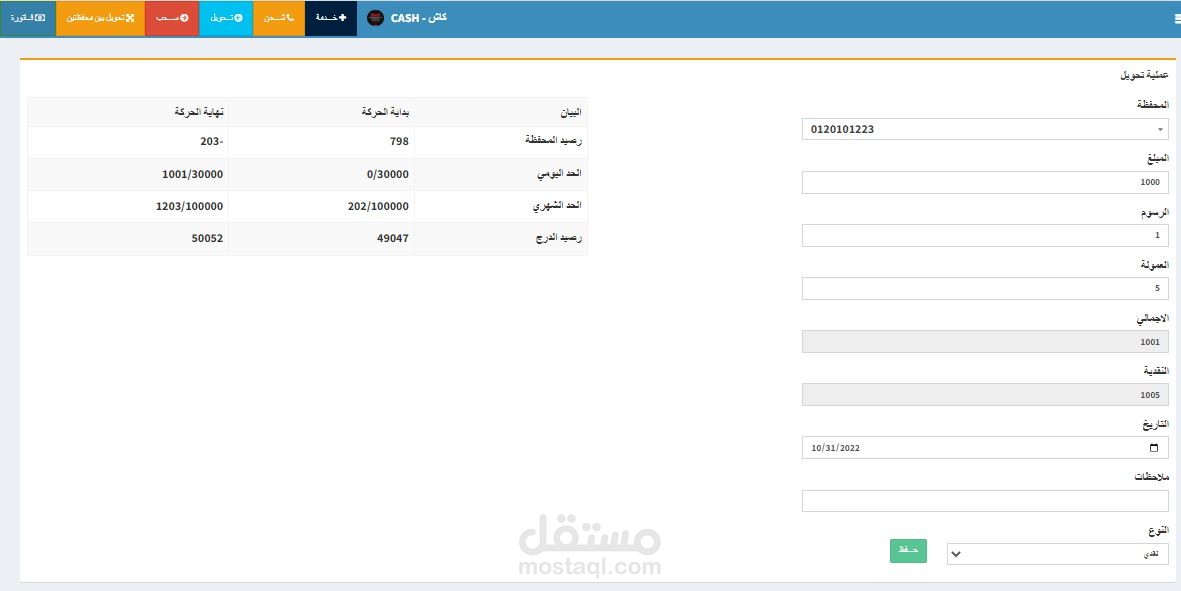 - العمليات علي المحافظ من سحب او تحويل او شحن او التحويل بين محفظتين وربطهم بدرج نقدية او اكثر