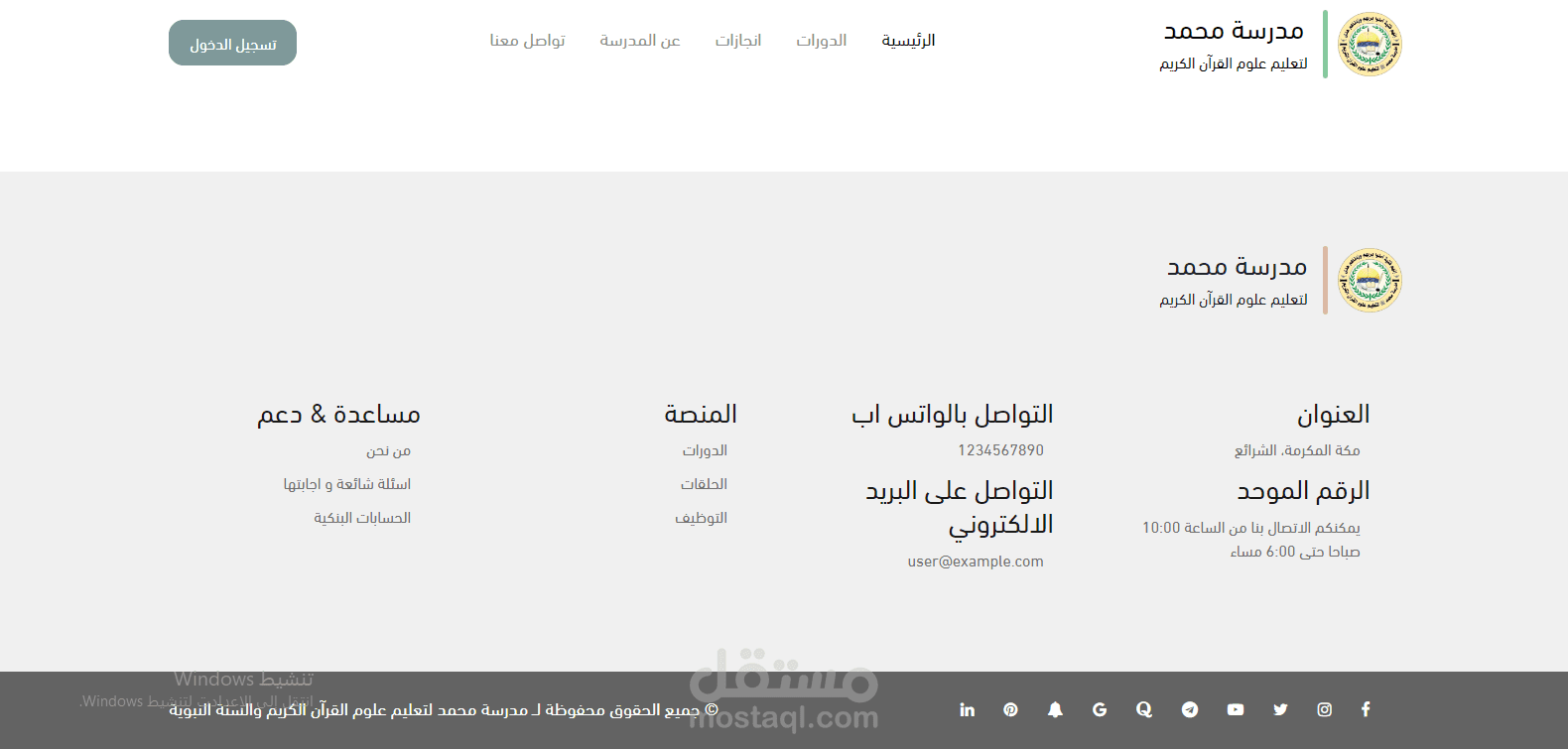 - إمكانية الحفظ والتعليم عن بعد: يحتوى الموقع على صفحة الإنضمام إلى المدرسة من خلال حجز الموعد وإنشاء جدول خاص بالمواعيد والبدء بالتعليم عن بعد.
