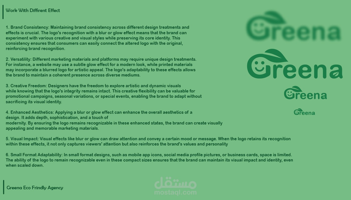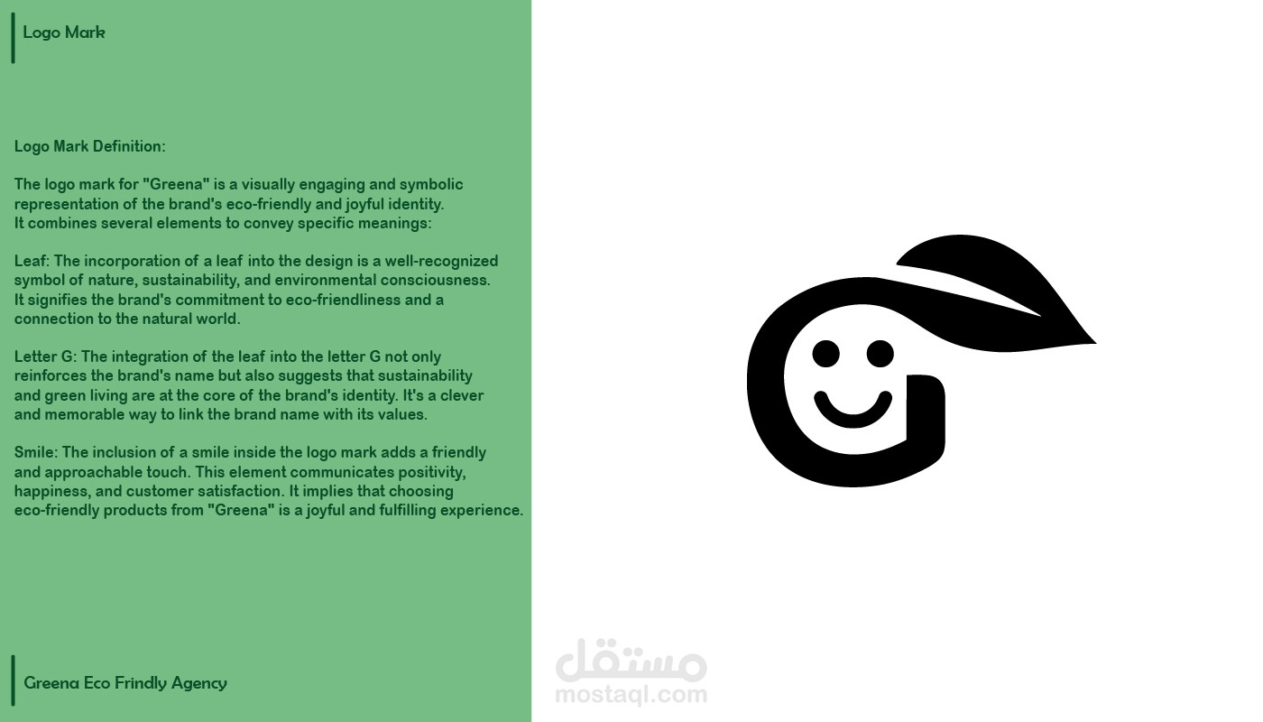 تمثل هذه العناصر المجتمعة في الشعار رسالة العلامة التجارية بوضوح، حيث تعبر عن التزامها بالمسؤولية البيئية والرعاية الصحية. الاستخدام الذكي للشكل واللون يجعل الشعار قابلاً للتمييز والمرونة للاستخدام عبر مجموعة متنوعة من وسائط التسويق والاتصال. بشكل عام، يمثل شعار "جرينا" هويتها بشكل فعال ويعبر عن رسالتها بأسلوب بصري جذاب ومعبر.