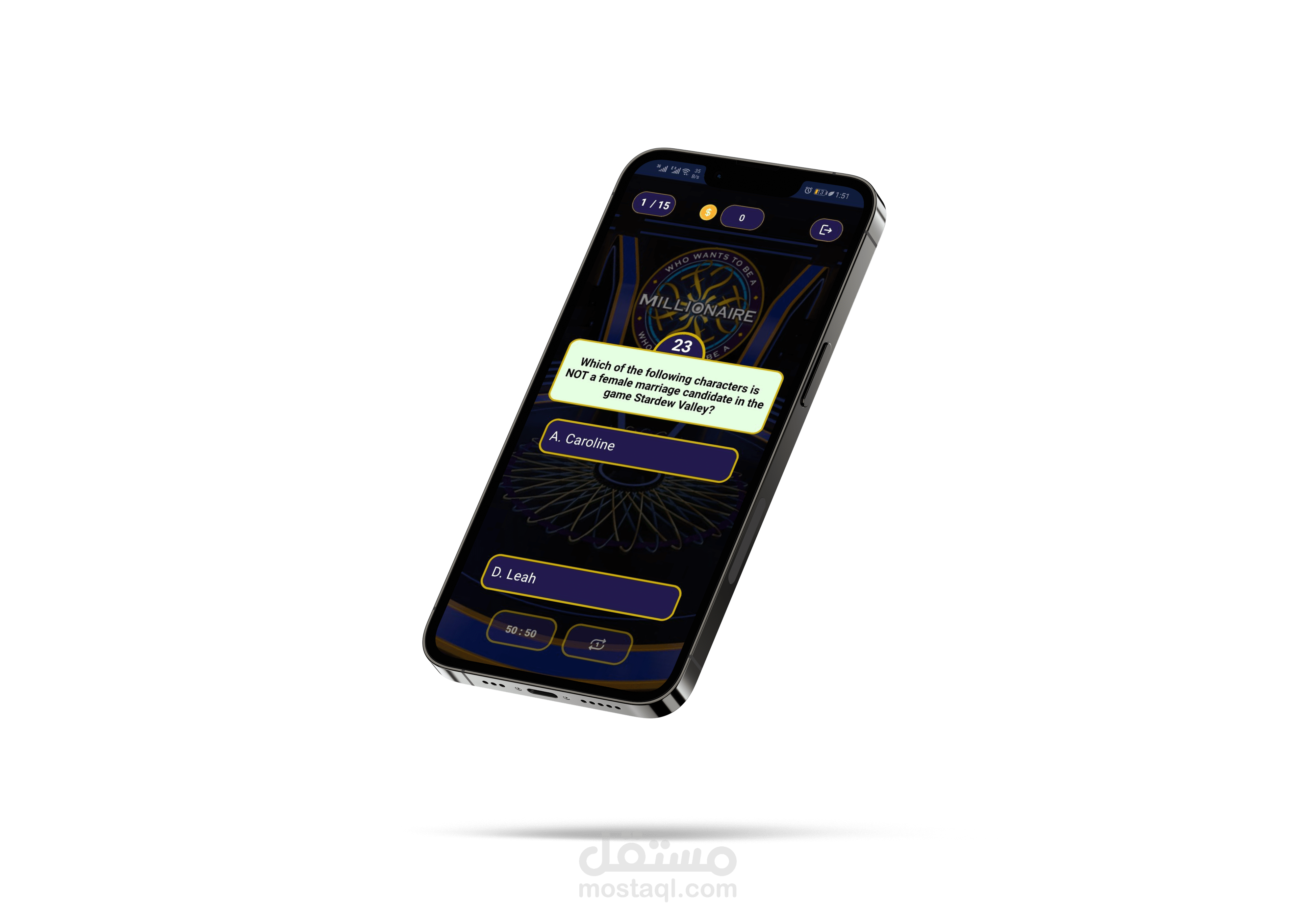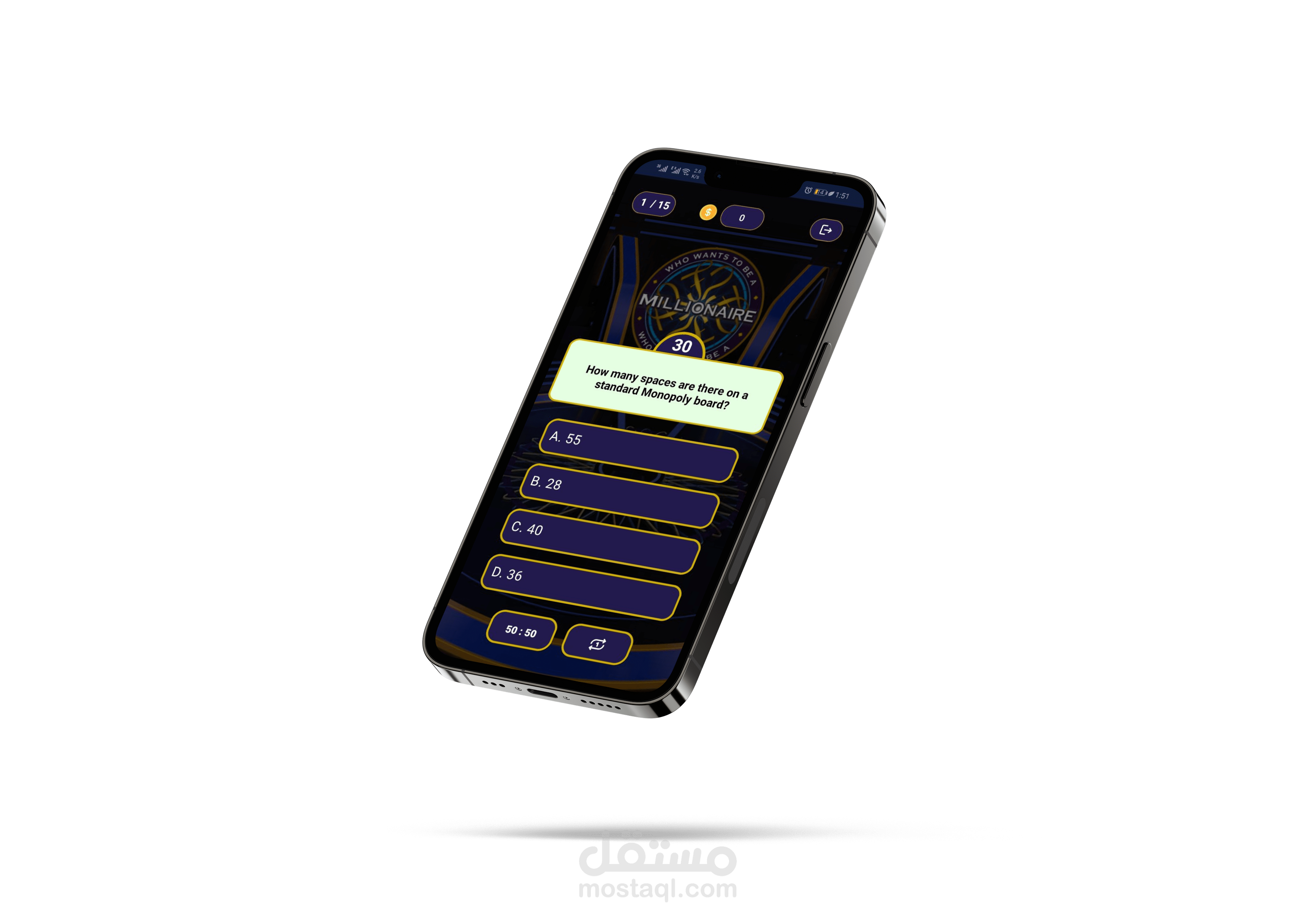 لعبة المليونير، تطبيق Android الرائد الذي يقدم تجربة معلومات متطورة وغامرة مستوحاة من البرنامج التلفزيوني الشهير. تم تصميم هذا التطبيق لعشاق المعرفة وعشاق الاختبارات الذين يبحثون عن الترفيه والتحفيز الفكري.