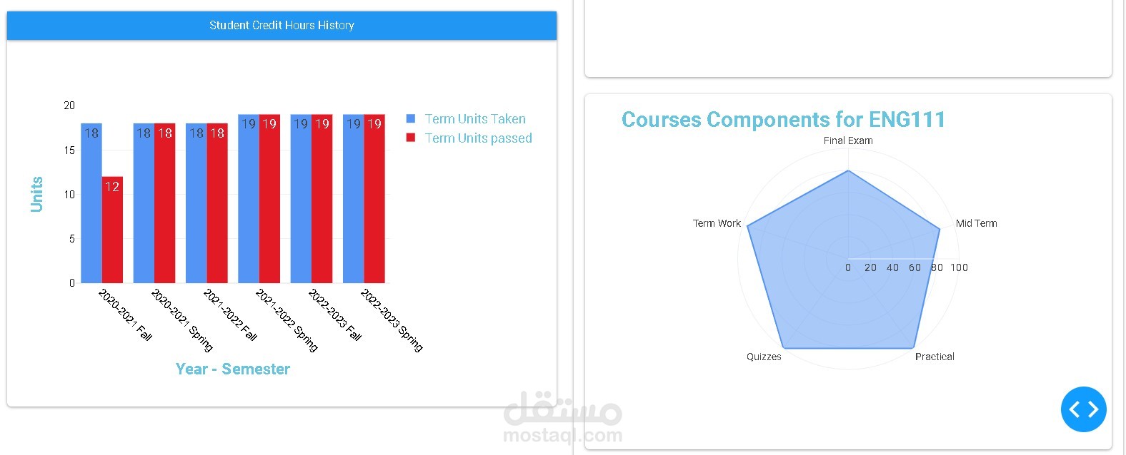 Credit Hours Registered & Passed for each term.