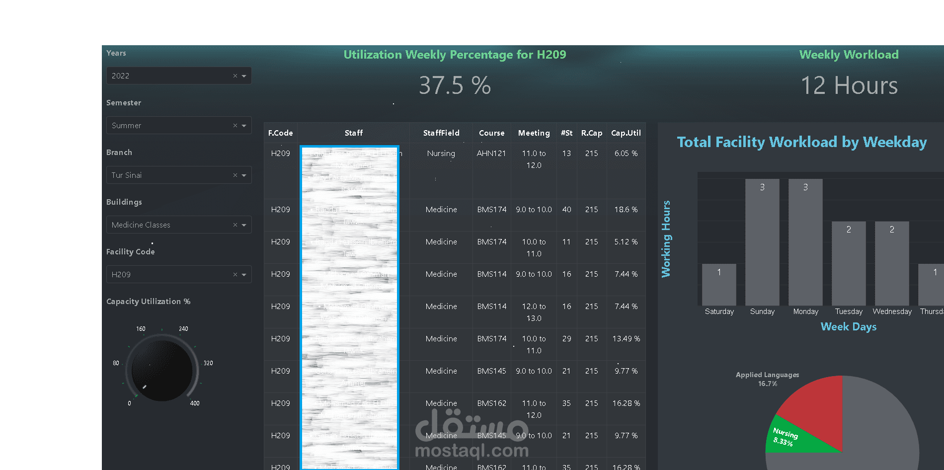(weekly teaching hours, # Classes, # Modules, Avg Students per