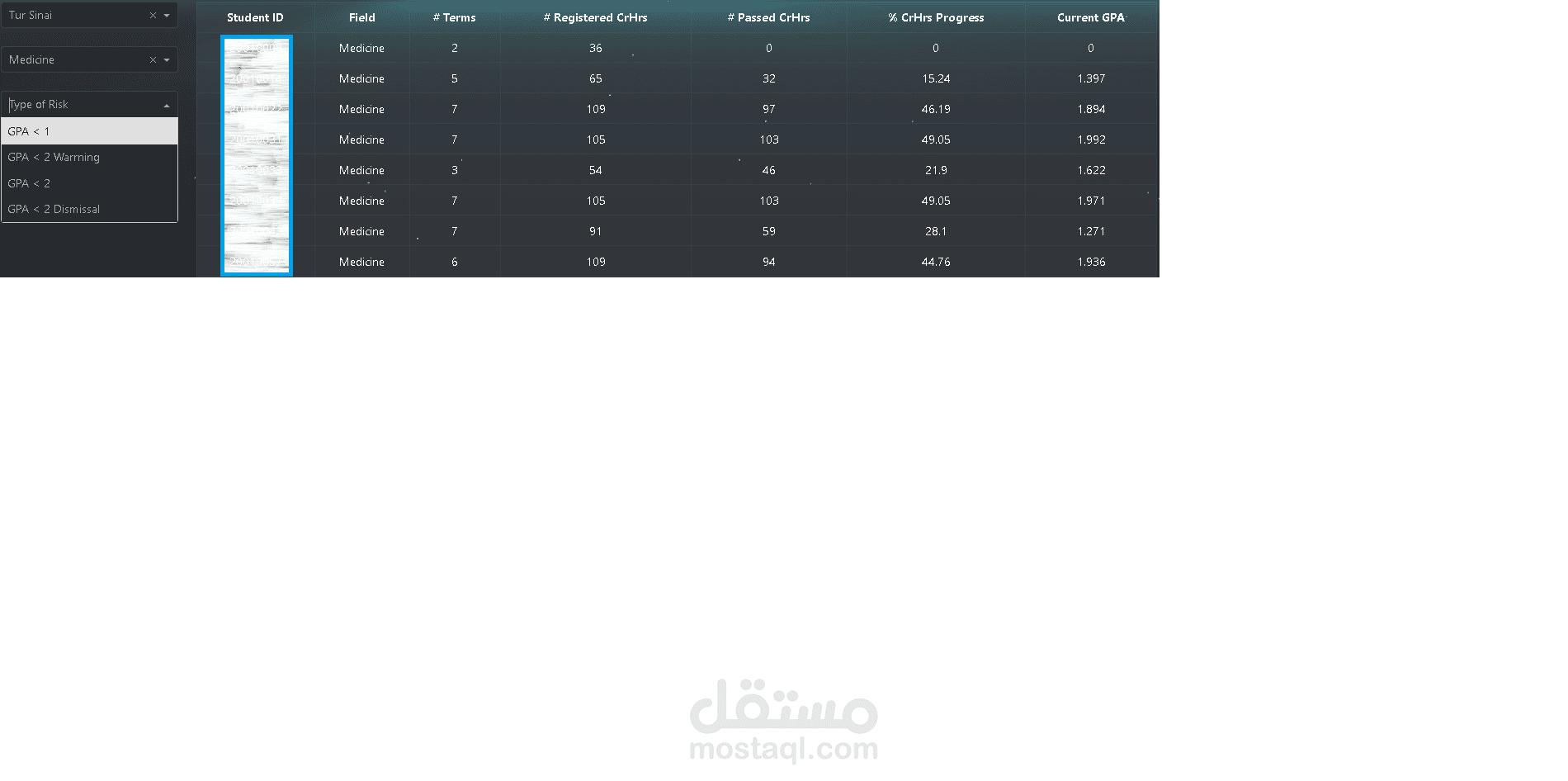 Field, Total Registered & Passed CrHrs, Graduation Progress