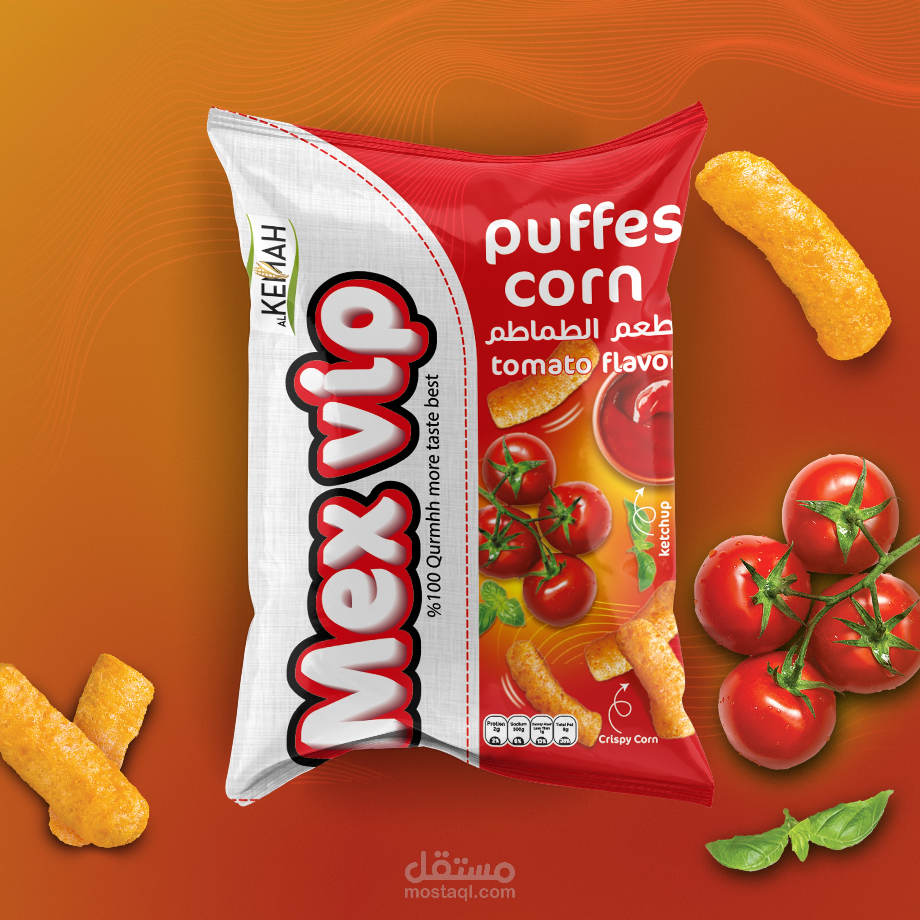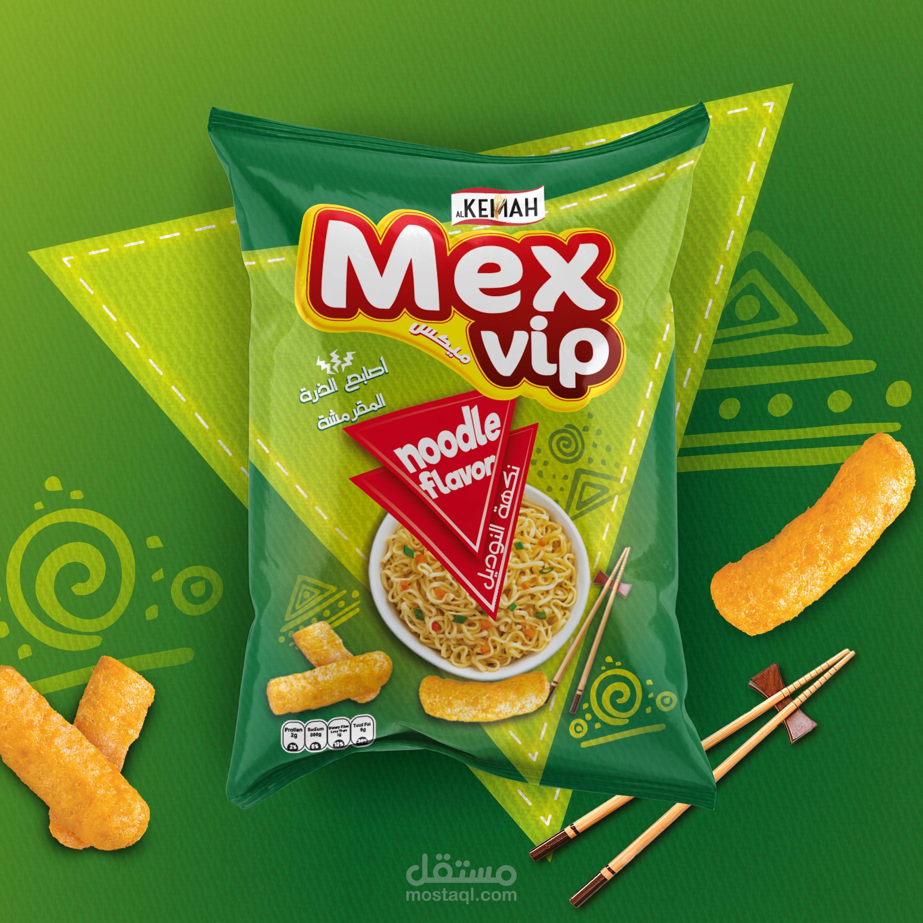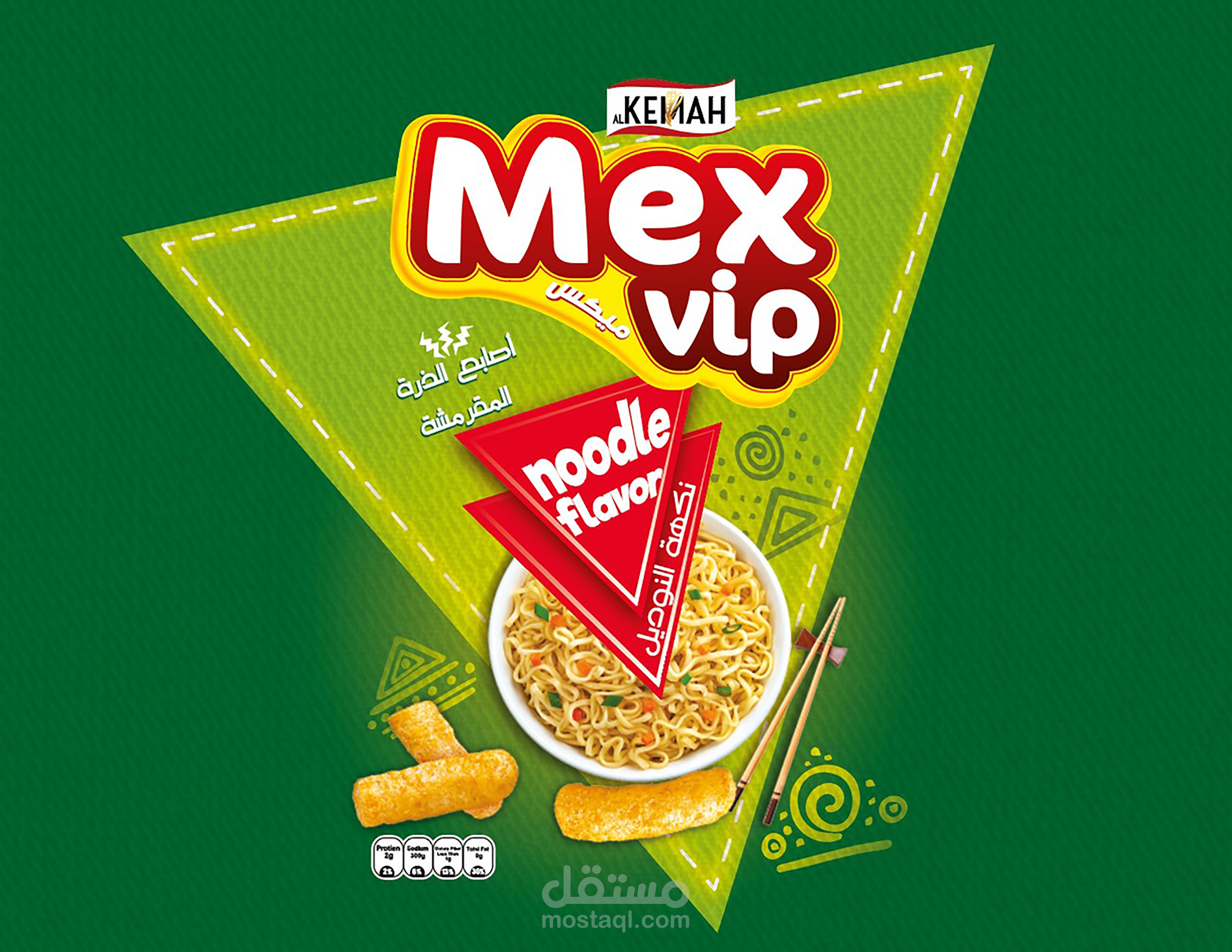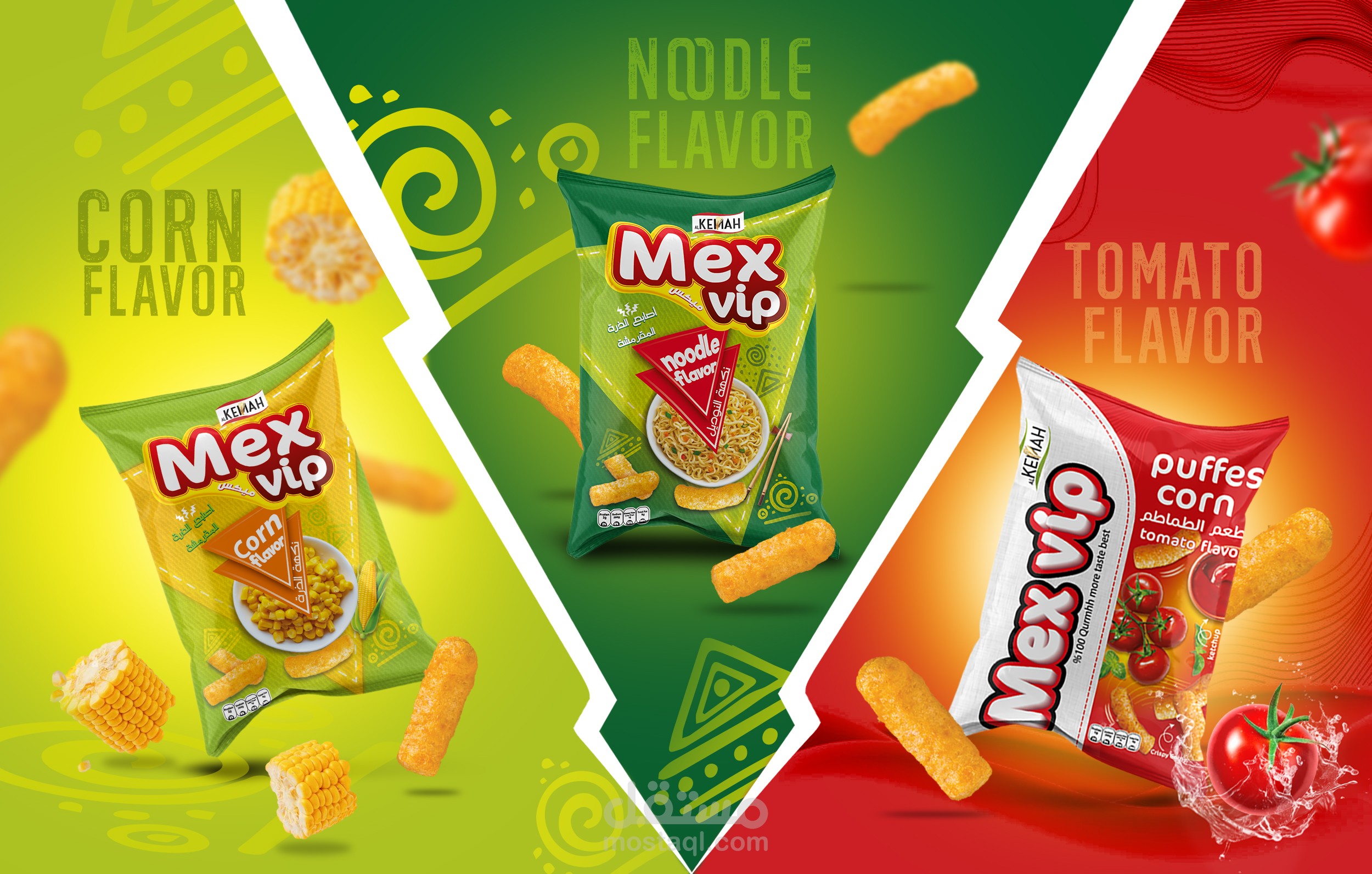 Chips Mix VIP, 3 Flavors, ketchup, corn and noodles. I used a group of eye-catching colors that suggest fresh natural colors to indicate the use of natural ingredients similar to the Flavors. I used a group of symbols and elements that bring happiness to the soul and activity.