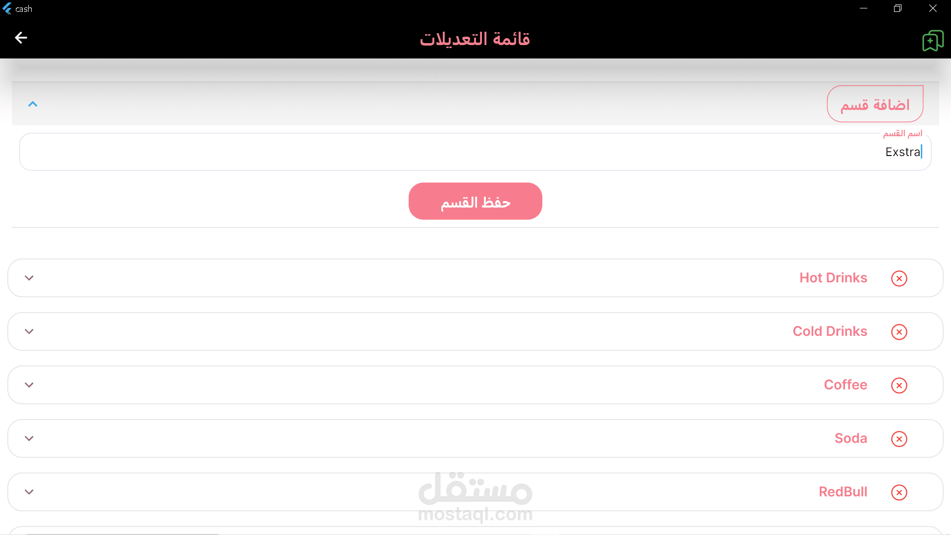 وبداخل كل قسم يمكن للمستخدم انشاء اصناف