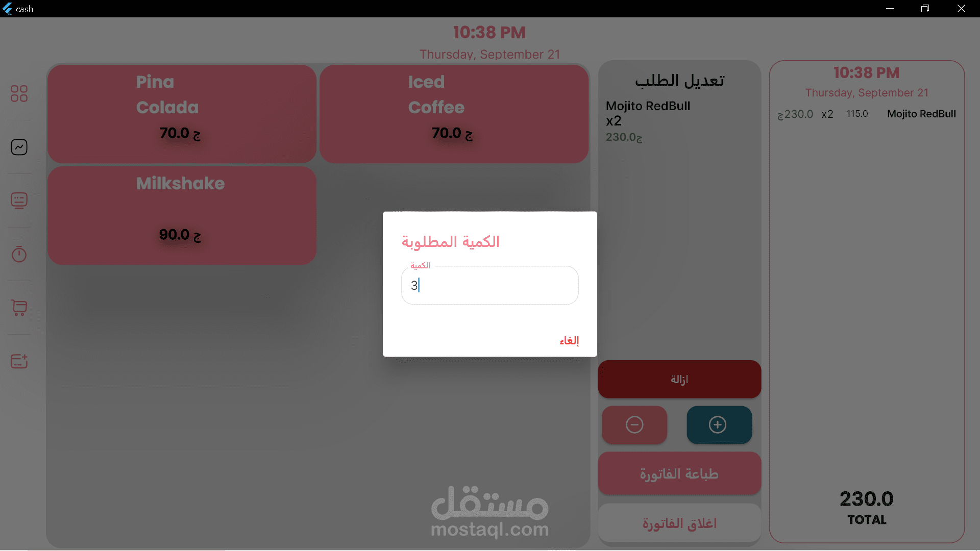تسجيل جميع الاصناف التي تم بيعها وماهو تحت التحيهز يتمم حفظه وما تم بيعه للحصول علي قيمه الايراد