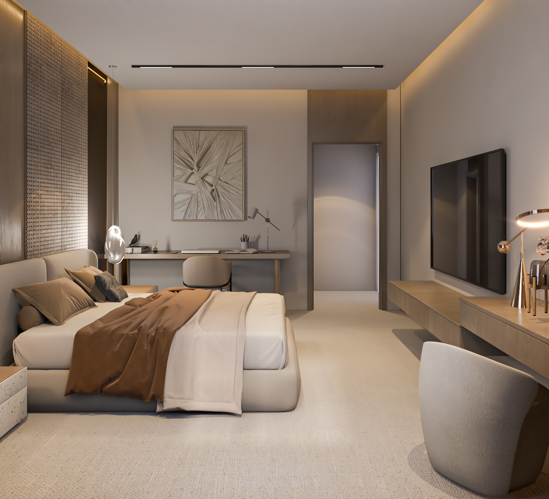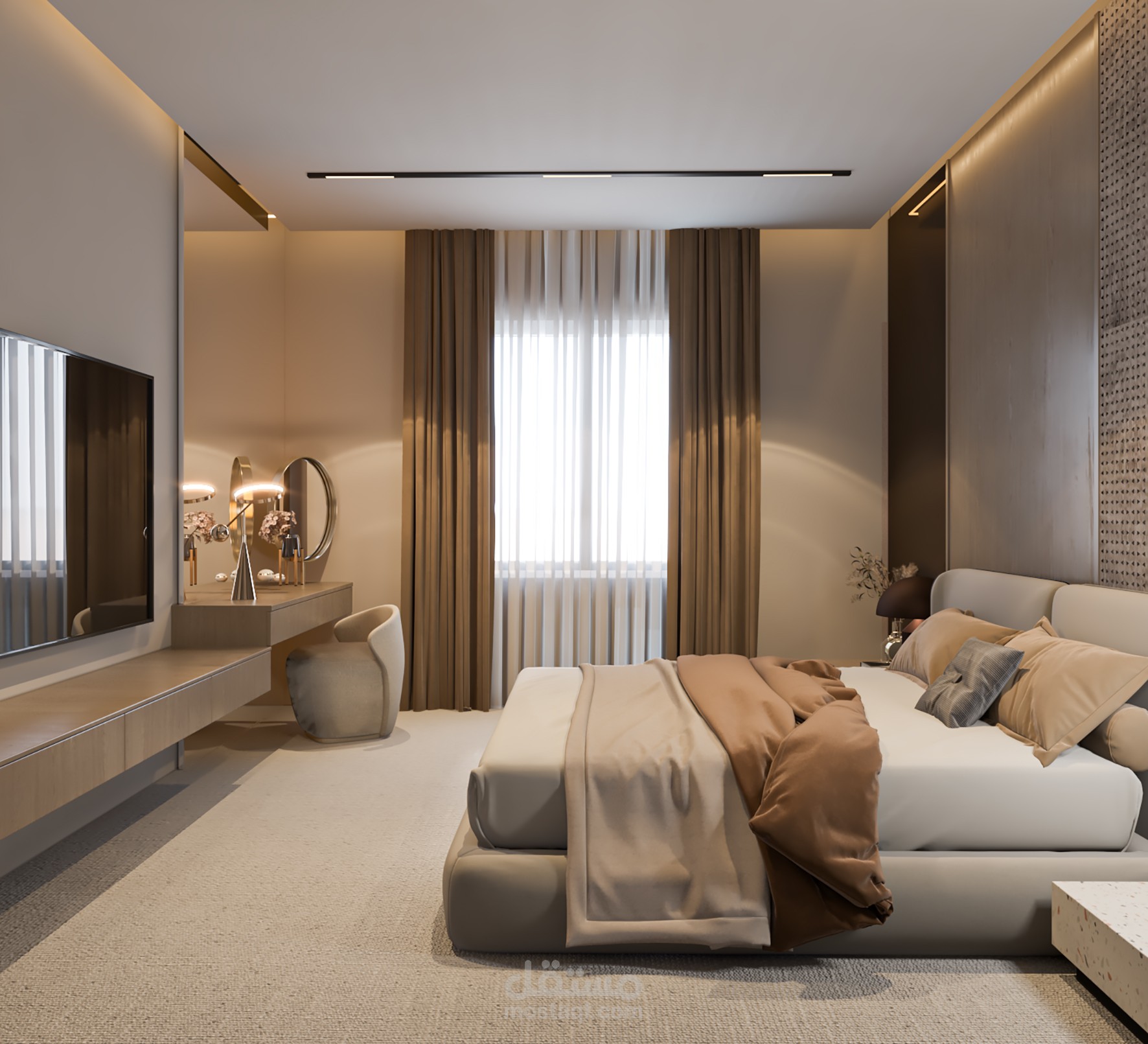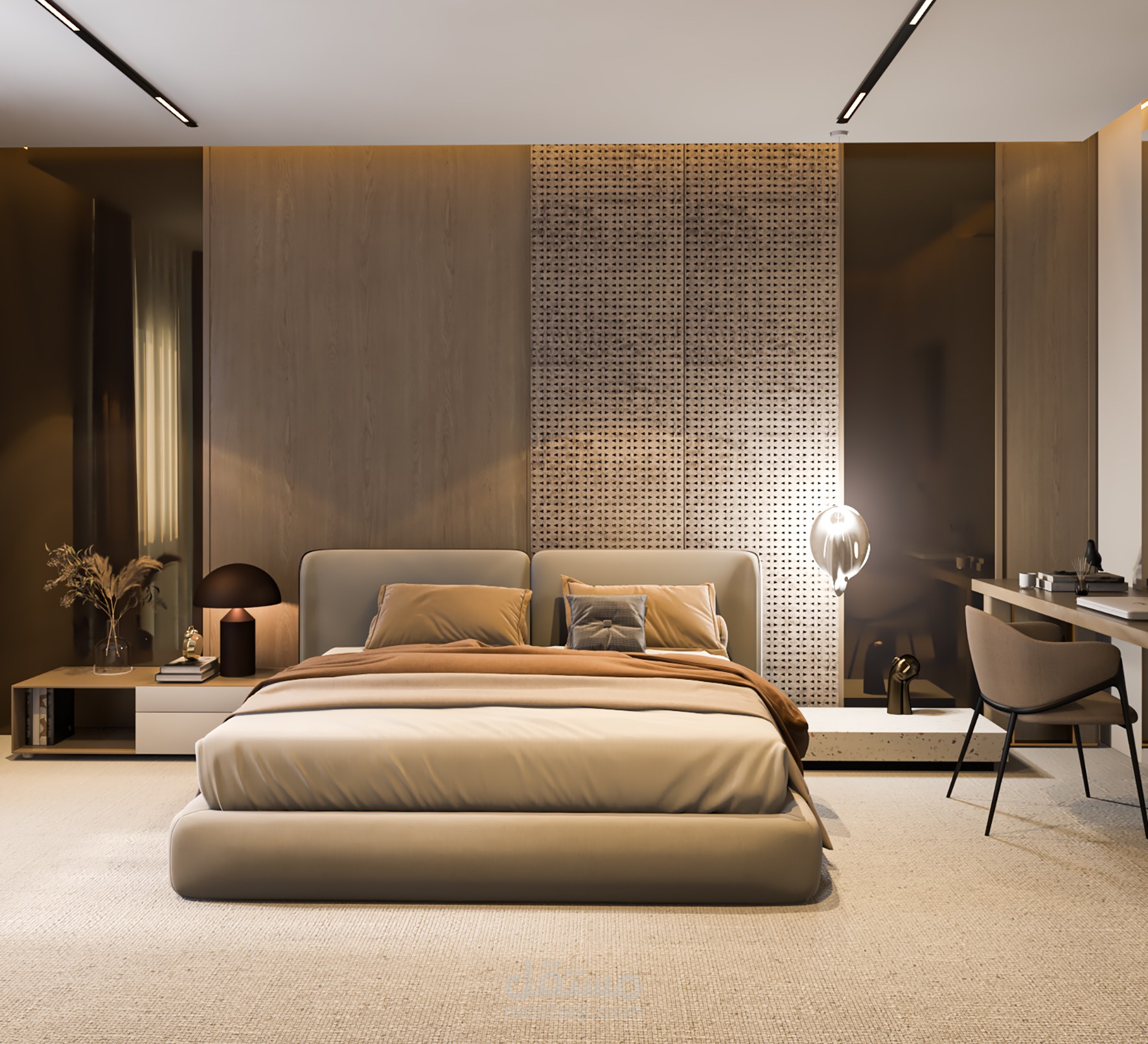 تصميم شقه استوديو تحتوي على صاله وغرفه نوم وجلسه خارجية باستايل فندقي