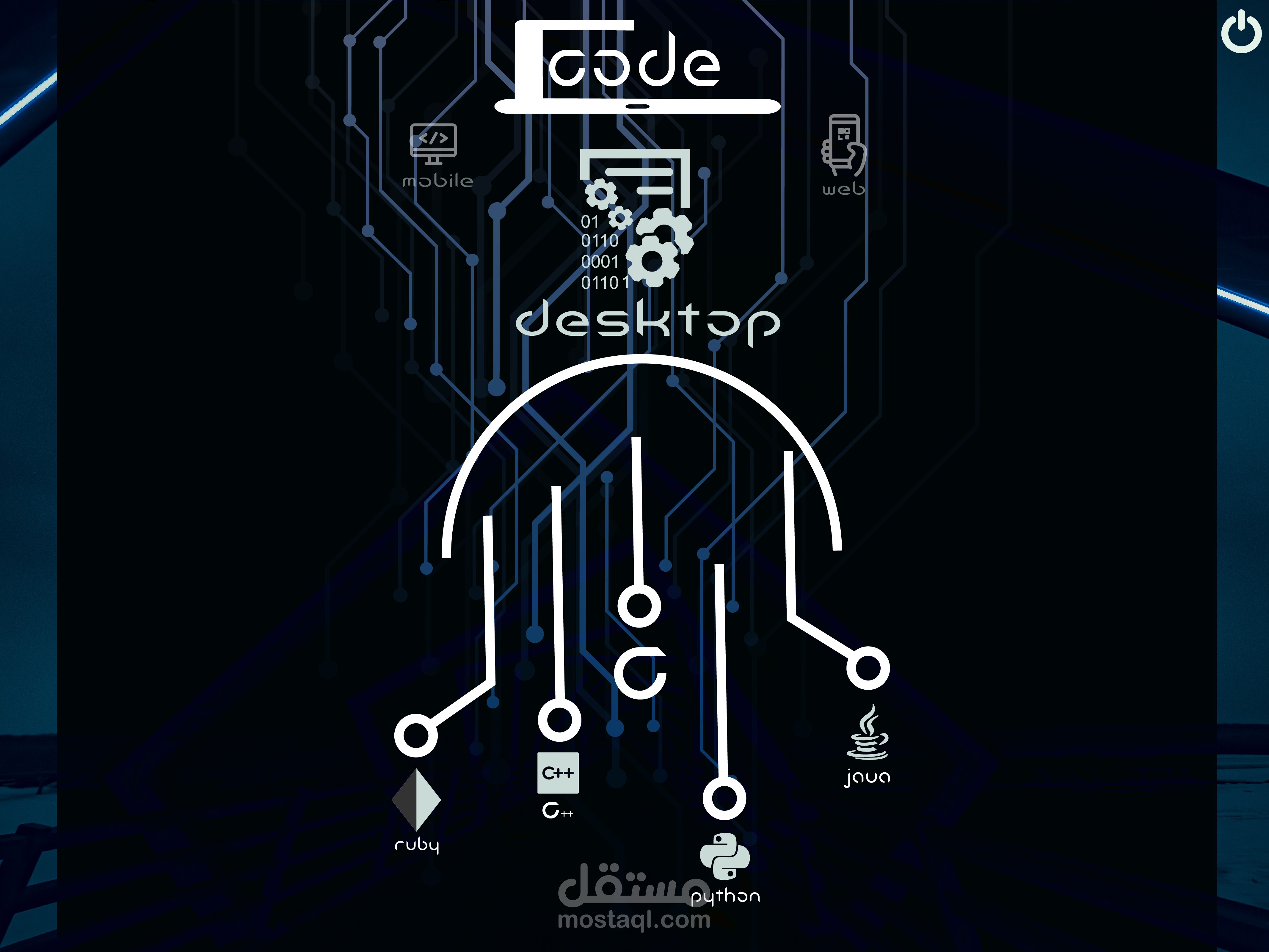 مشروع لتعليم الكود تم تصميمه على ألستليتور وعمل الانيميشن والازرار التفاعليه ب flash animate