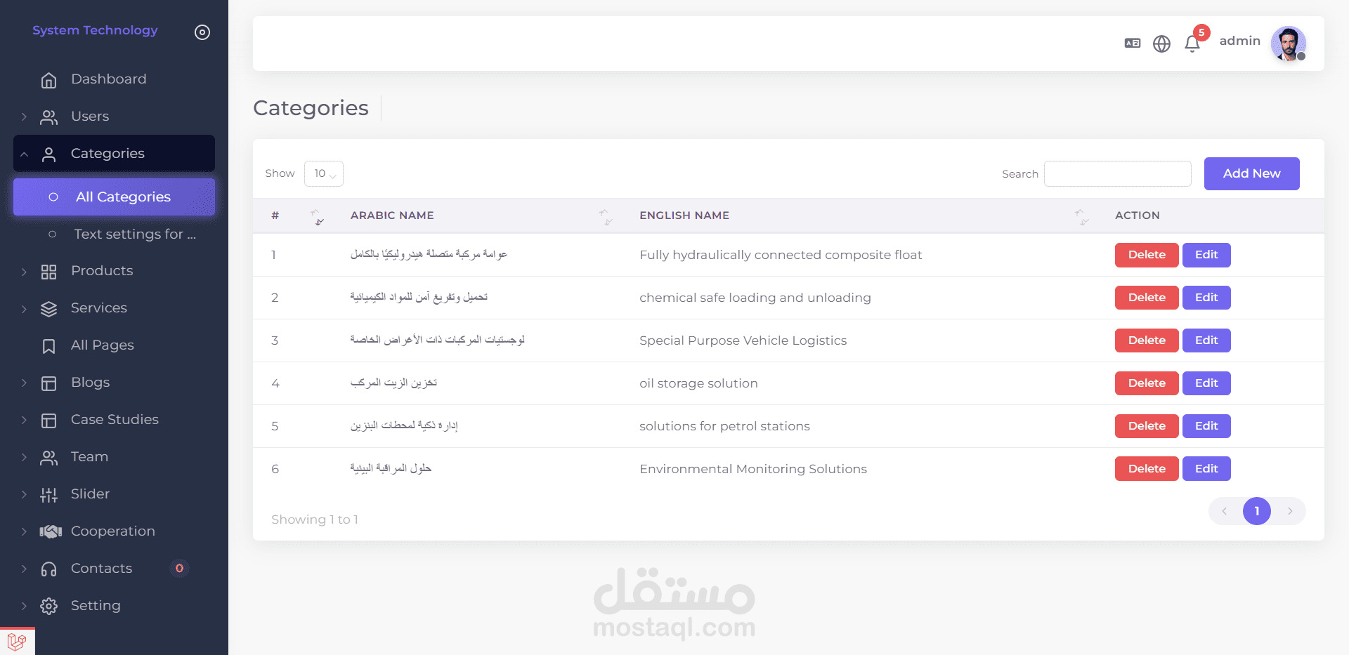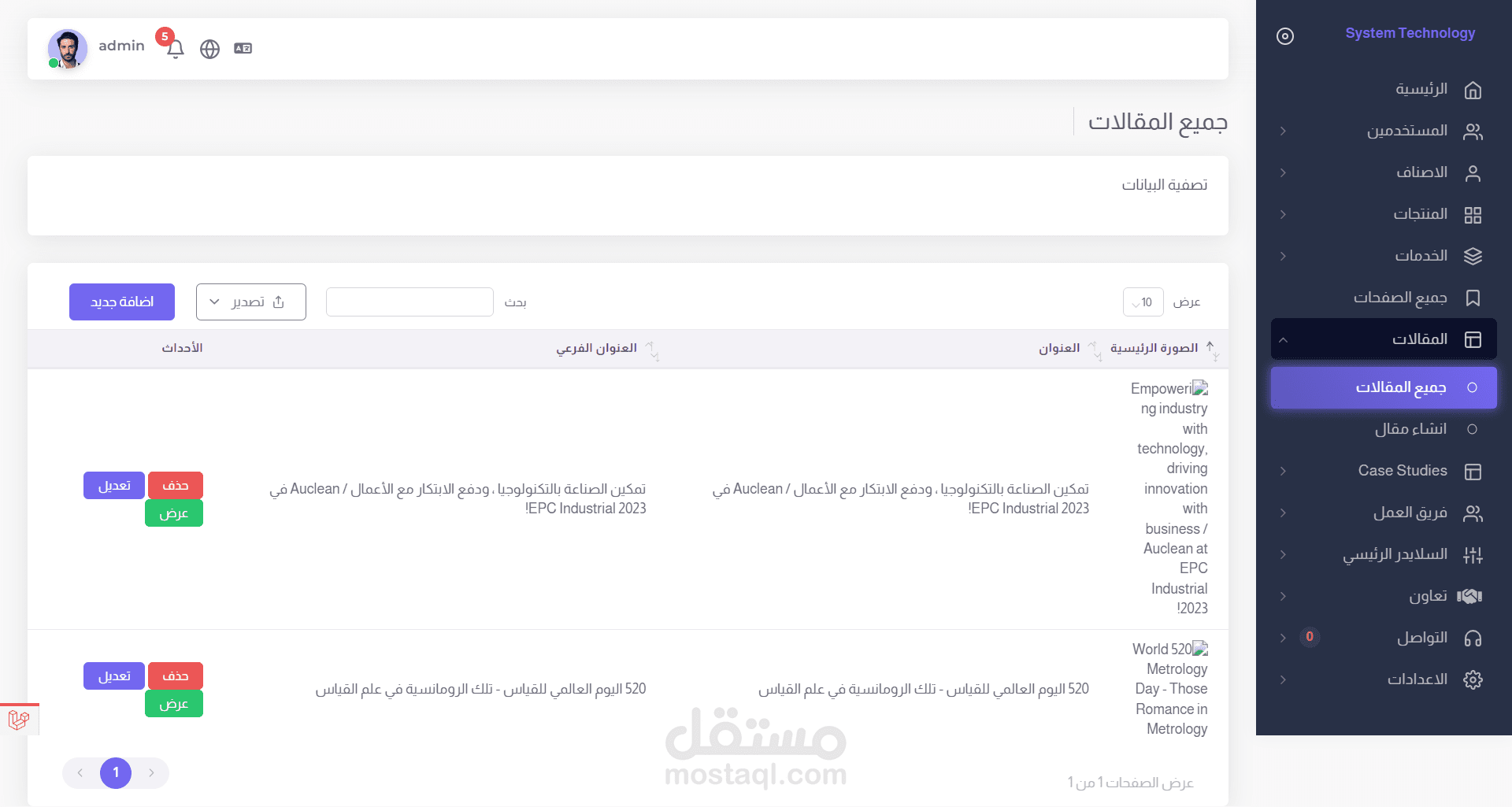 * إدارة محتوى الموقع بكل سهولة، بما في ذلك إضافة وتعديل وحذف لكل الجداول في لوحة التحكم مع إظهار رسائل الاخطاء ورسائل التأكيد عند حذف اي كائن في النظام .