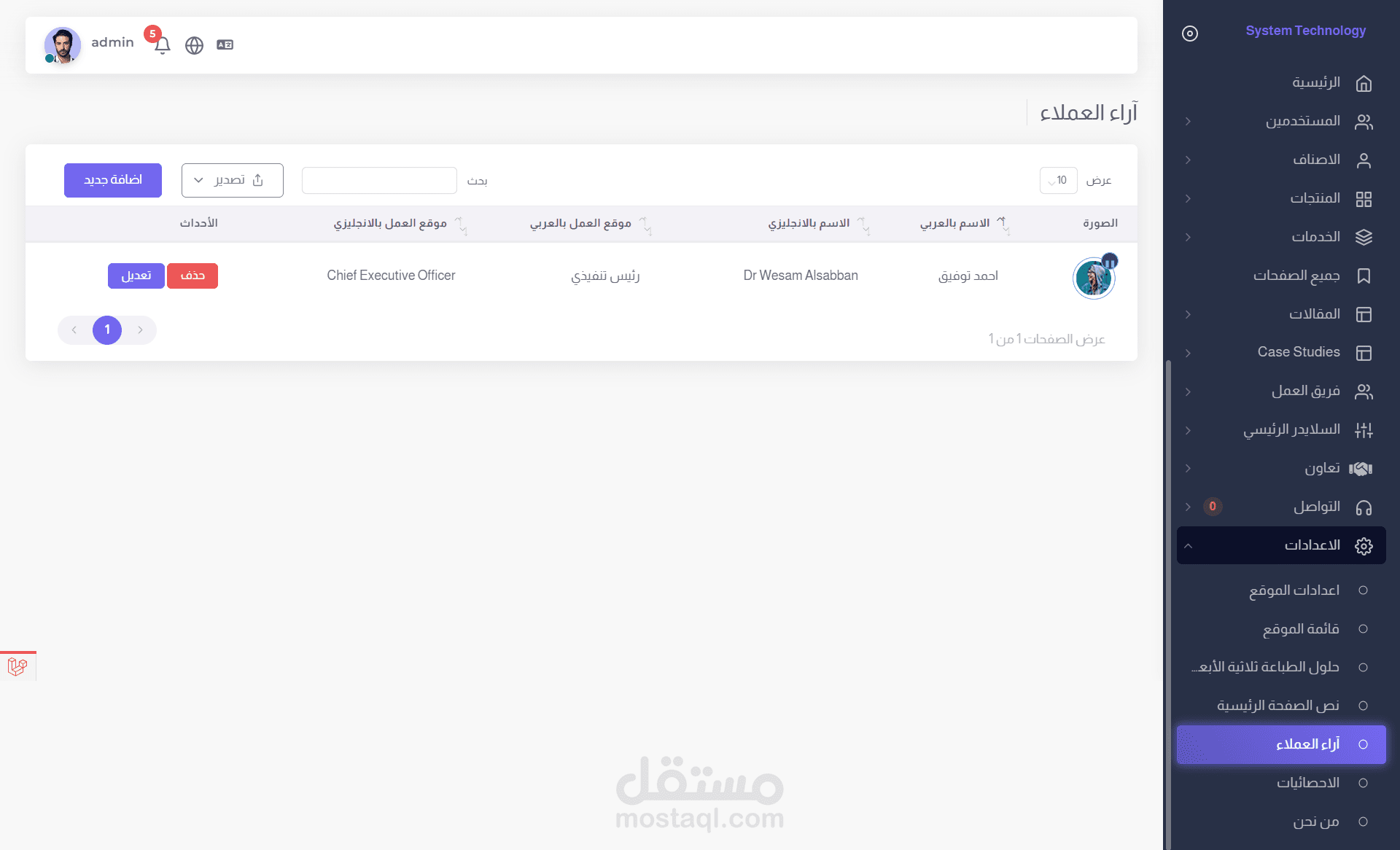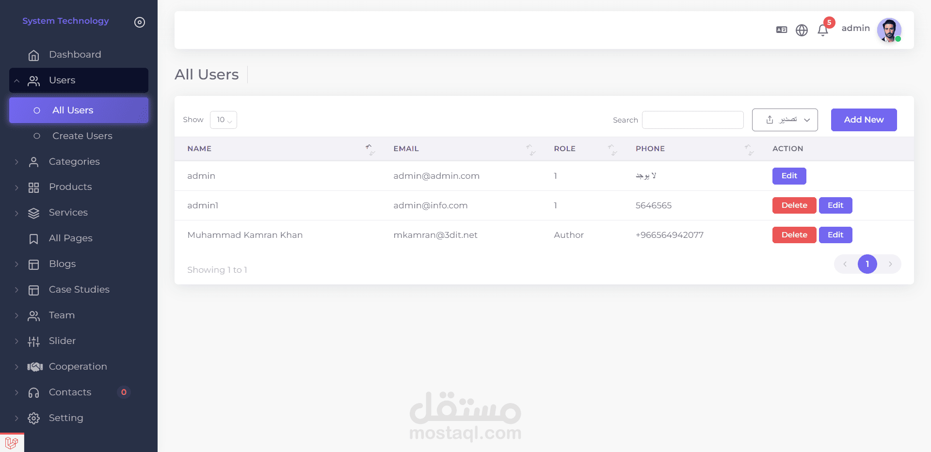 * اضافة او تعديل او حذف لمدير مع امكانية اعطاء صلاحيات معينة لكل مدير ومنعه من الدخول لأي صفحة لا يوجد له صلاحية بالدخول عليها.