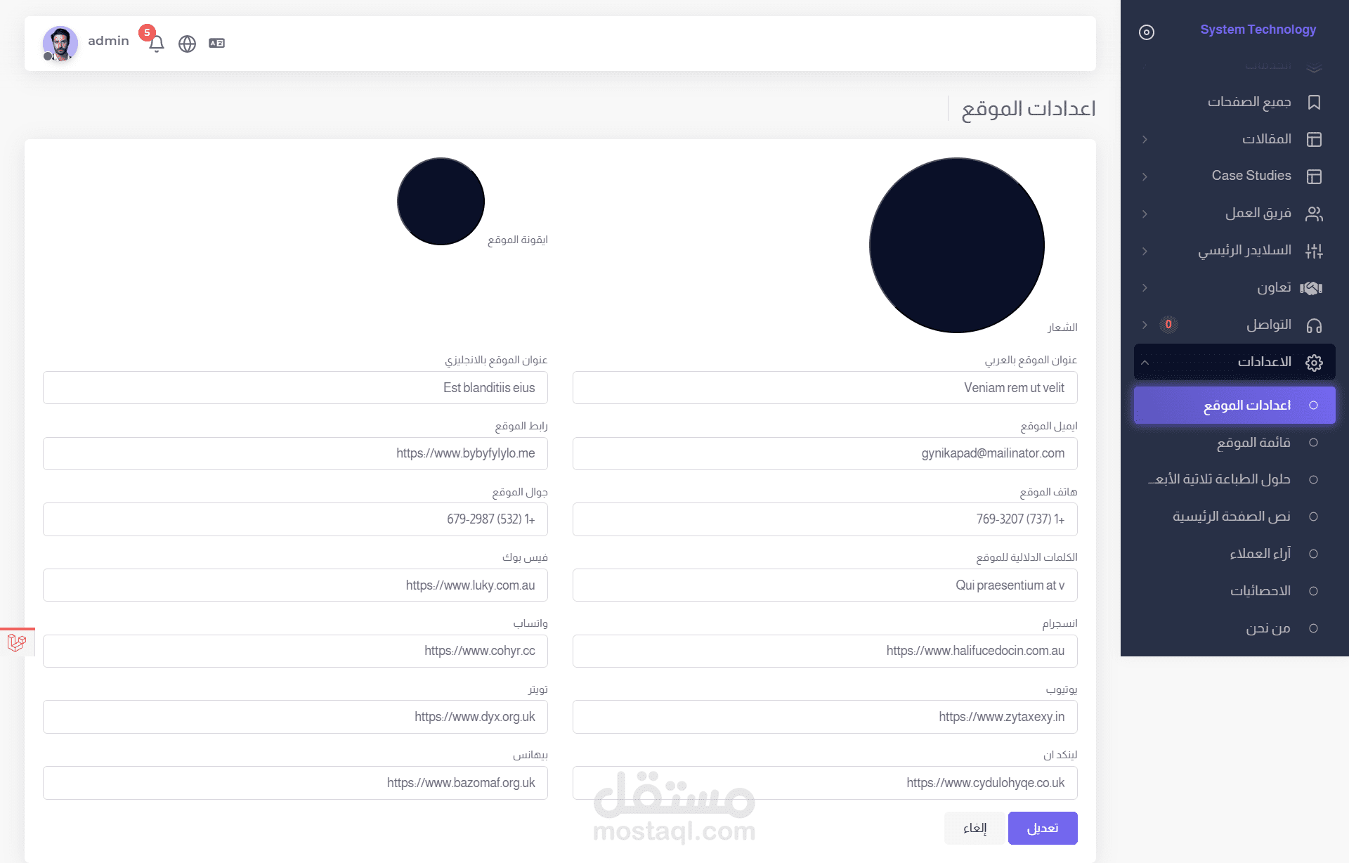 * امكانية تعديل اي جزئية في الموقع .