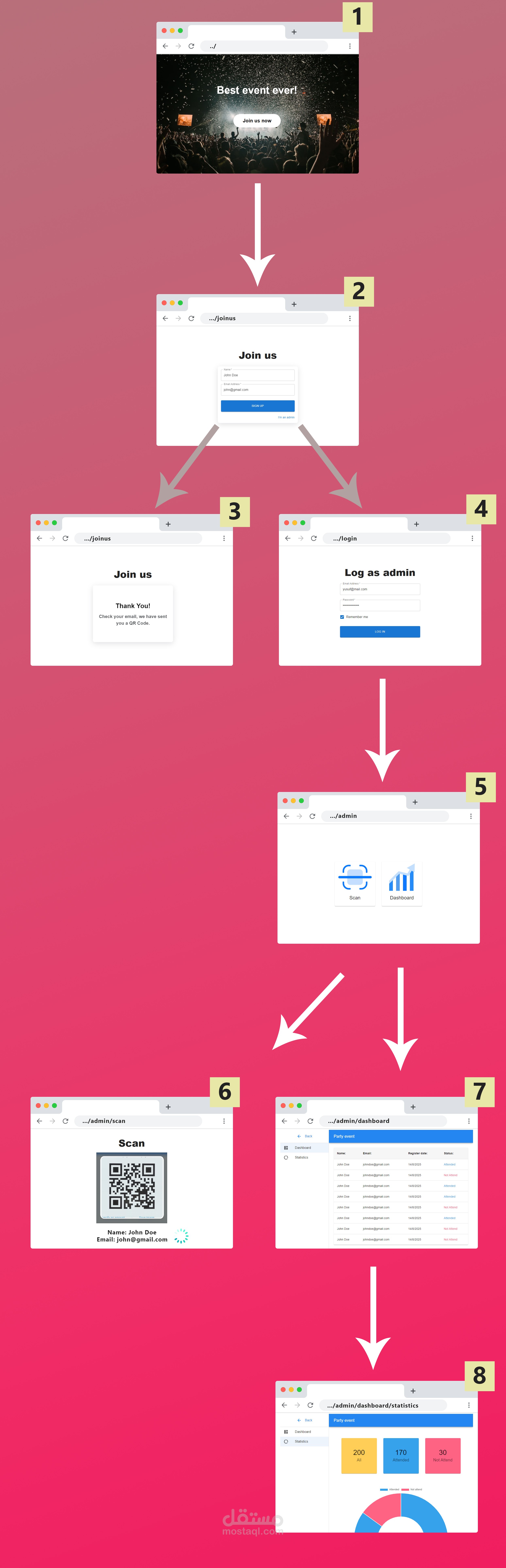 يتيح الموقع form للتسجيل لأي ضيف لديه الرابط والحصول على qr code يتم ارساله الى ايميله.