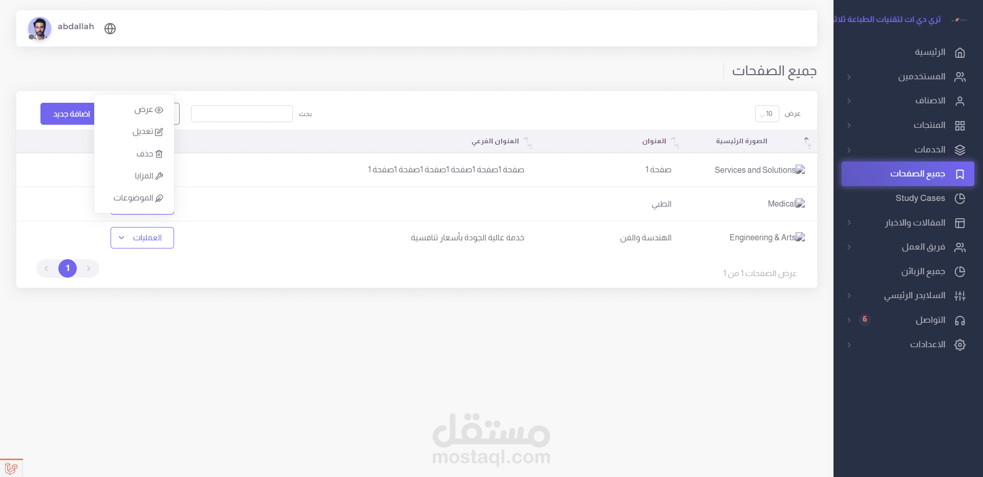 * امكانية البحث والفلترة بسهولة لجميع الصفحات داخل لوحةالتحكم .