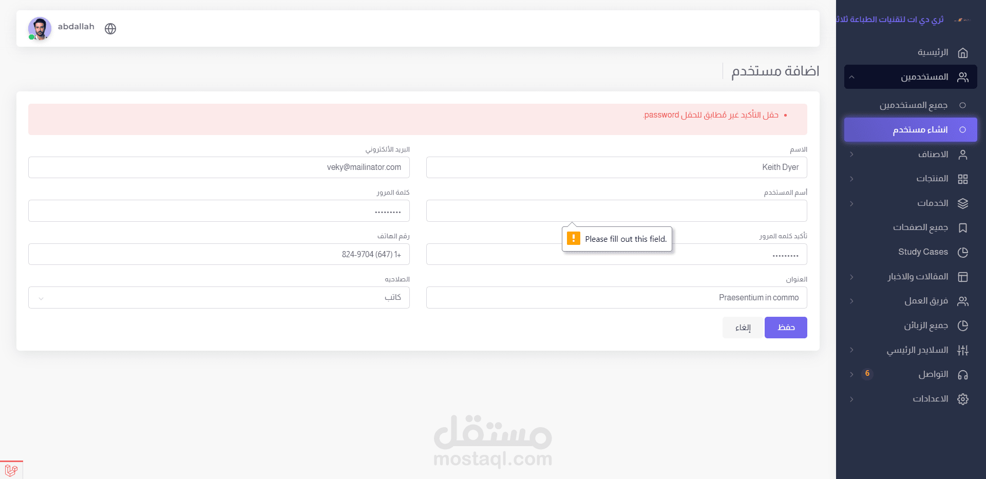 * اضافة او تعديل او حذف المستخدمين مع اعطاء صلاحيات معينة ومنعه من الدخول على اي صفحات ليست خاصة به مثال :