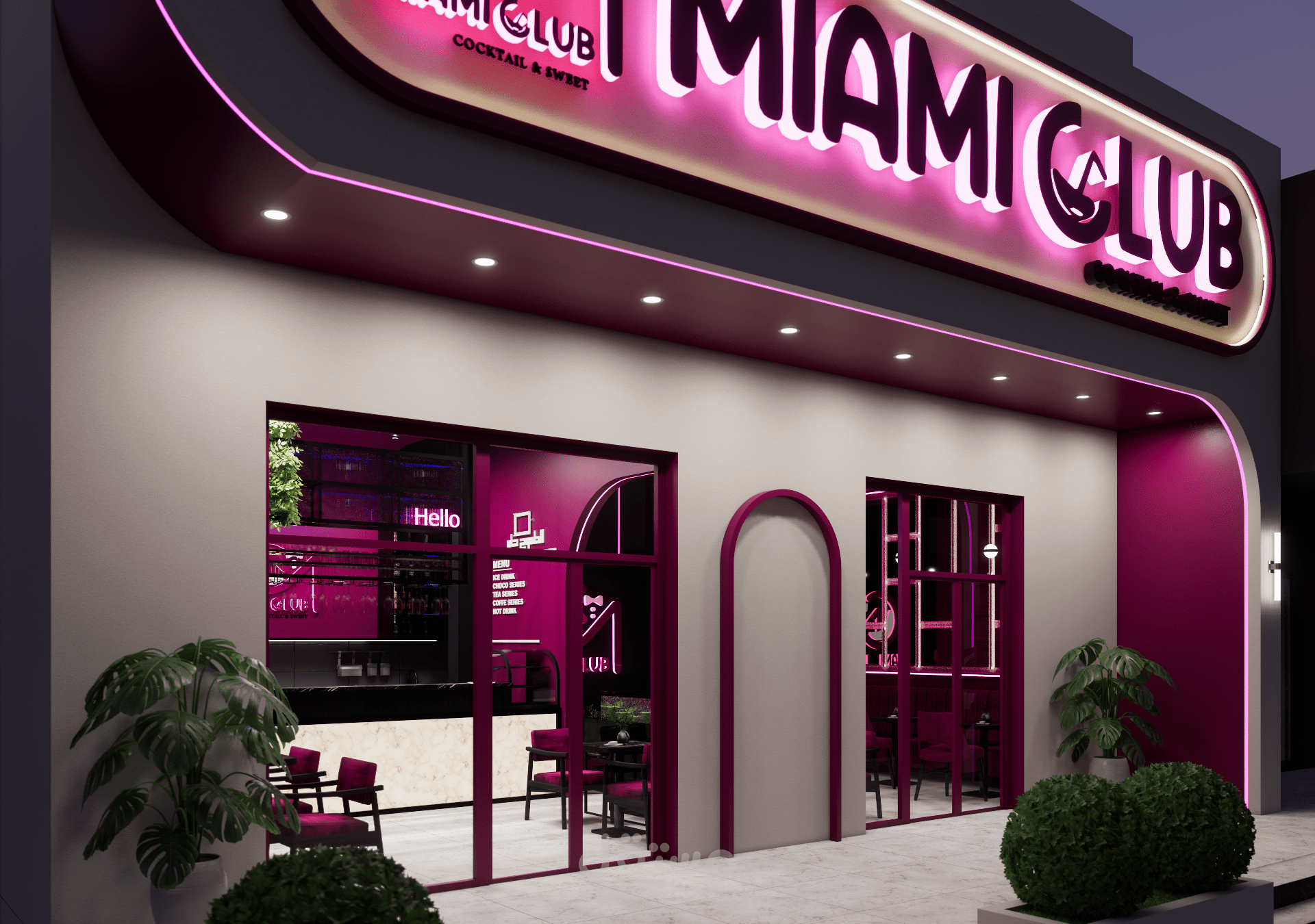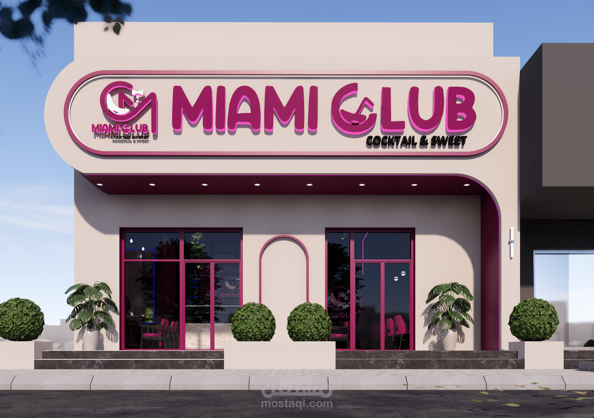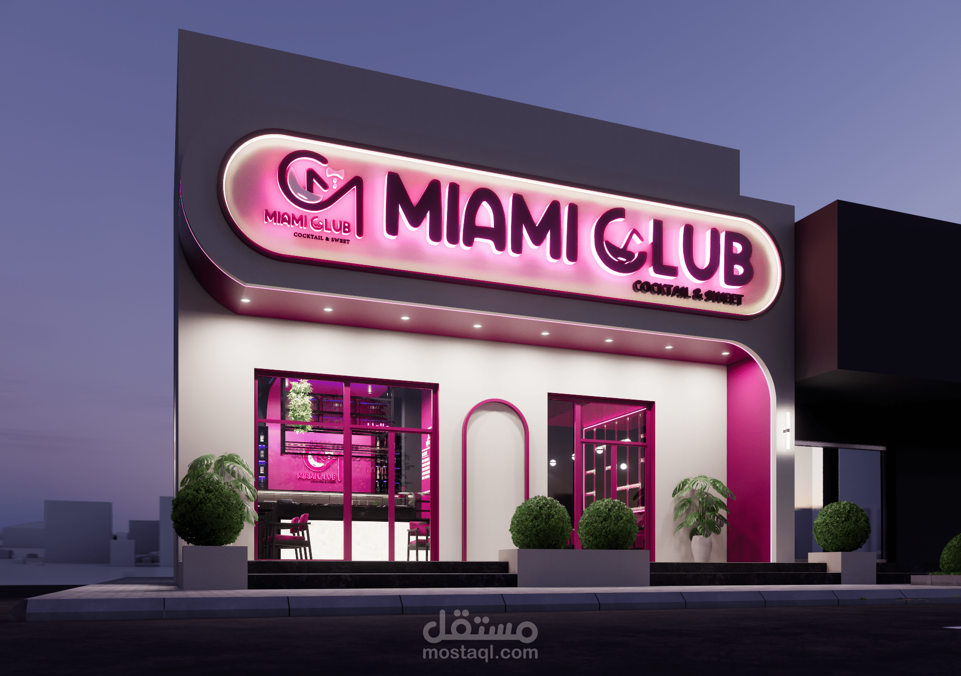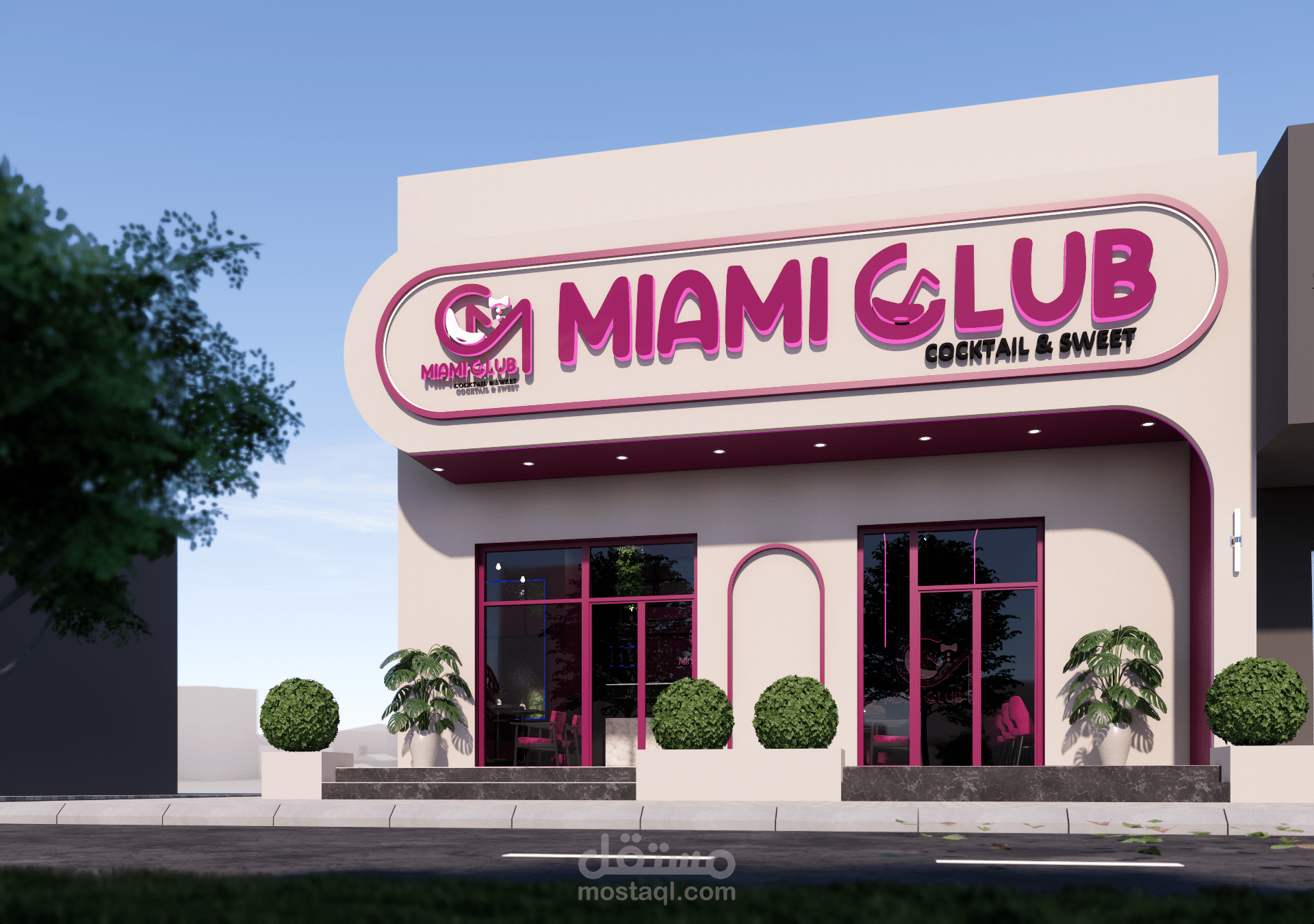 تصميم واجهة محل نادي ميامي للعصائر و حلويات بالطراز المودارن