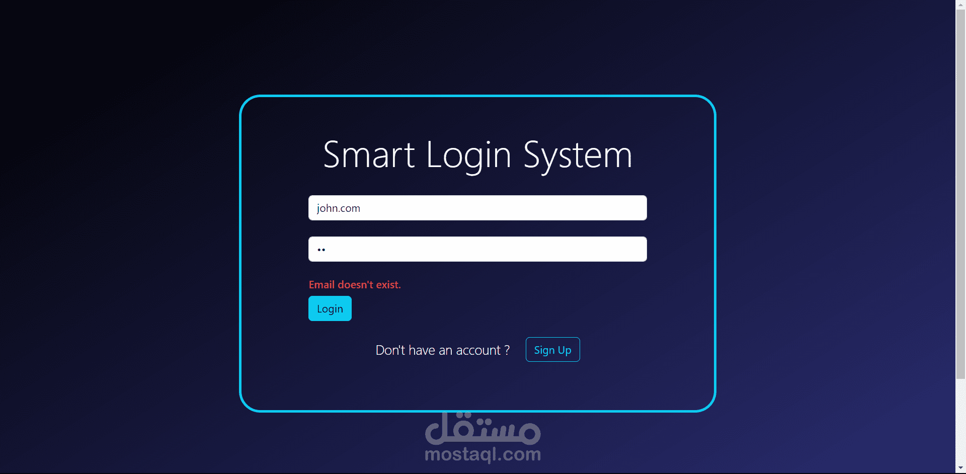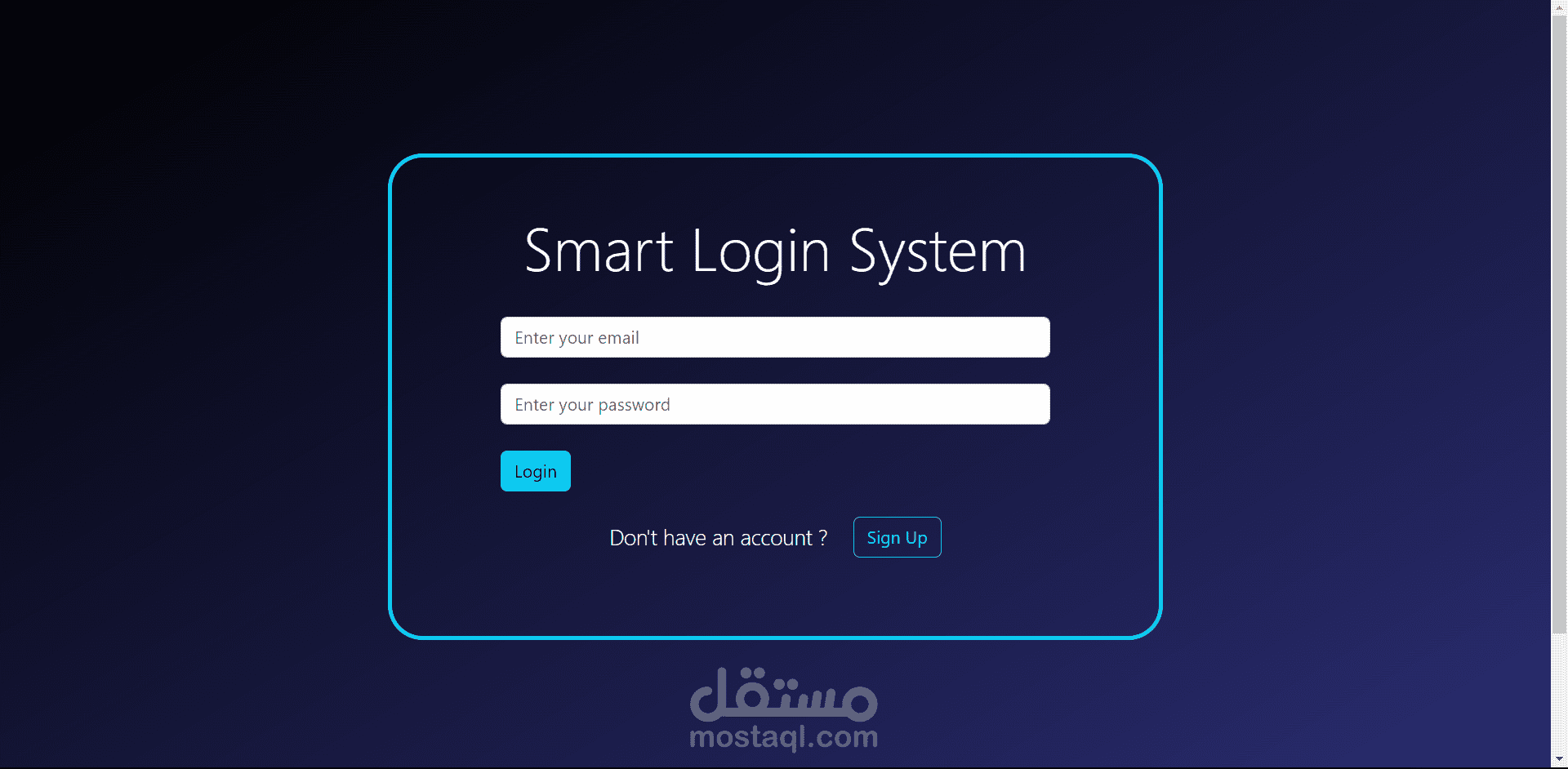 smart login system that provide users to login or sign up using html, css , js and regex to validate user inputs