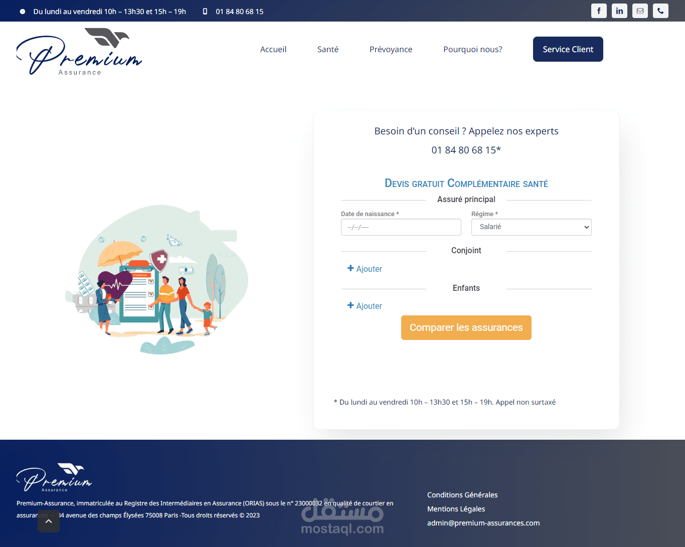 موقع premium-assurances هو موقع فرنسي يعمل علي تقديم الخدمات التامين الطبيى لكبار السن في فرنسا عن طريق ادخال بيانات الفرد وبيانات الاسره واختيار باقه التامين الطبيه الخاصه به