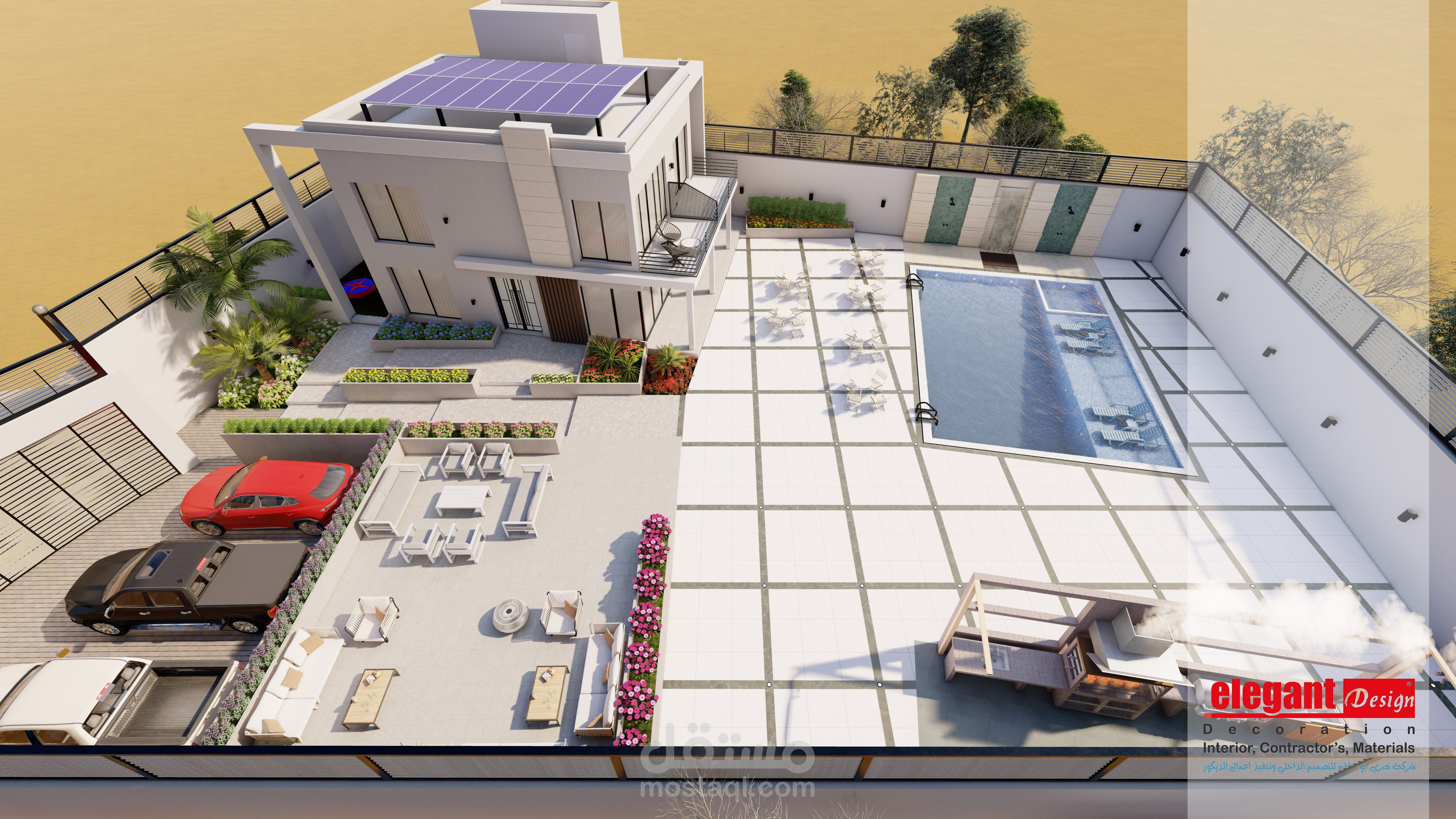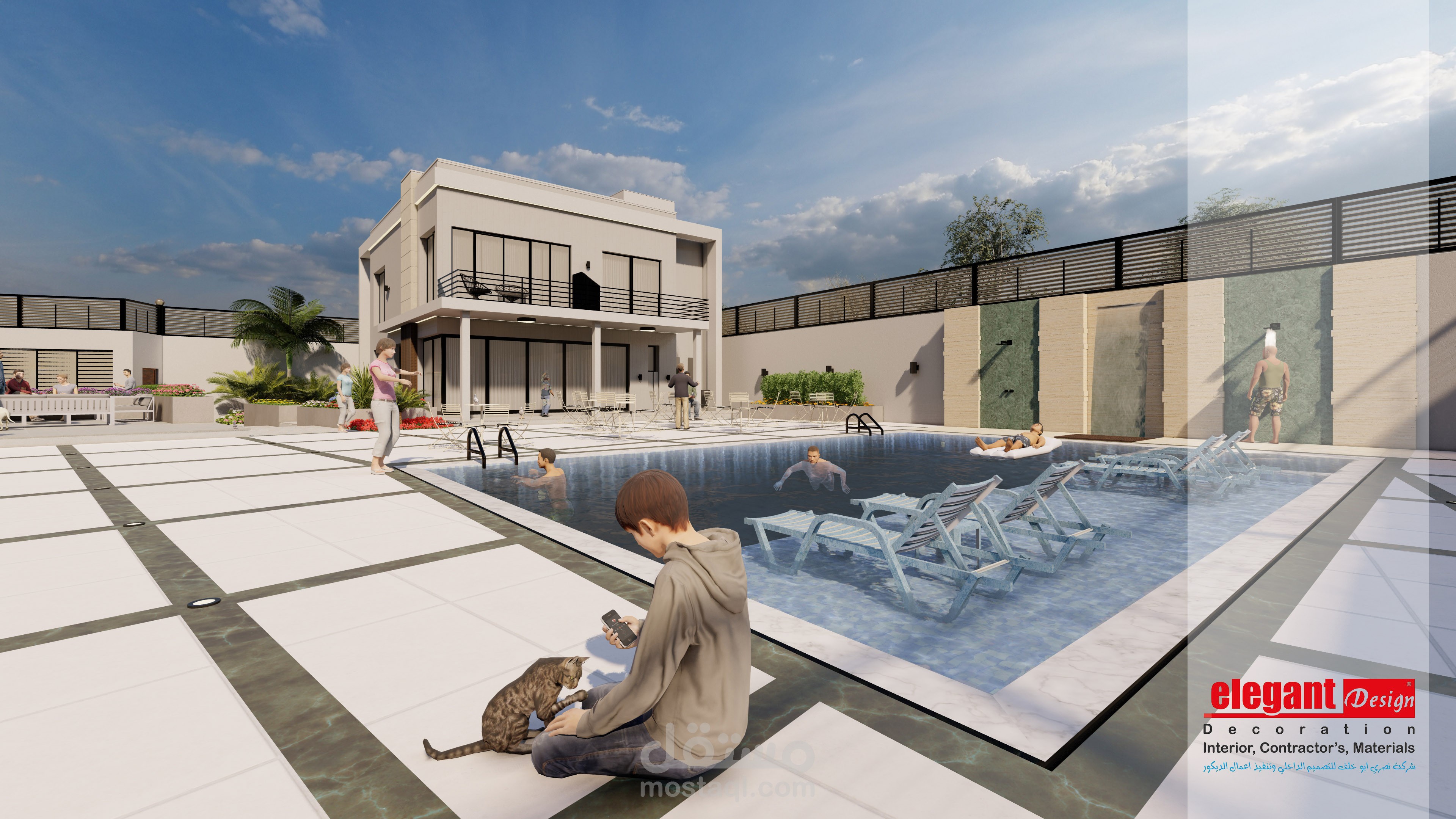 طلب السيد سامي تصميم بيت صغير يصلح لغايات التأجير للرحلات، وإضافة كافة المرافق الترفيهية من جلسات وبركة سباحة ومواقف سيارات وألعاب للأطفال، على أن يكون التصميم غير مبالغ فيه.