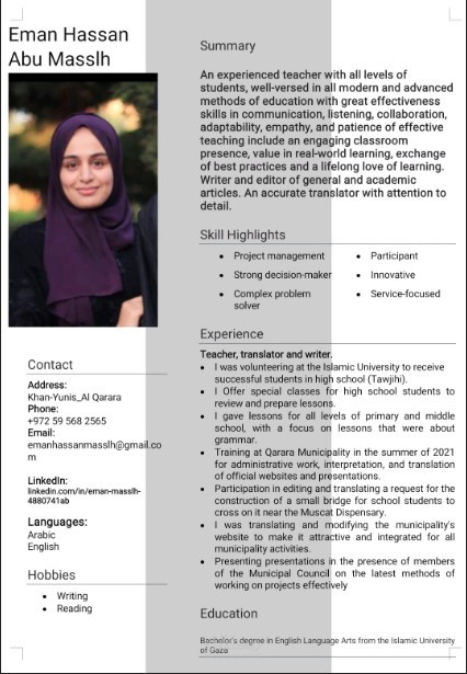 هل تبحث عن فرصة لجعل سيرتك الذاتية تبرز بين المتقدمين لنفس الوظيفة؟ نحن هنا لمساعدتك على تحقيق ذلك! خدمتنا المميزة في تصميم سير الذاتية باللغتين العربية والإنجليزية تساعدك على تقديم نفسك بأفضل طريقة ممكنة.