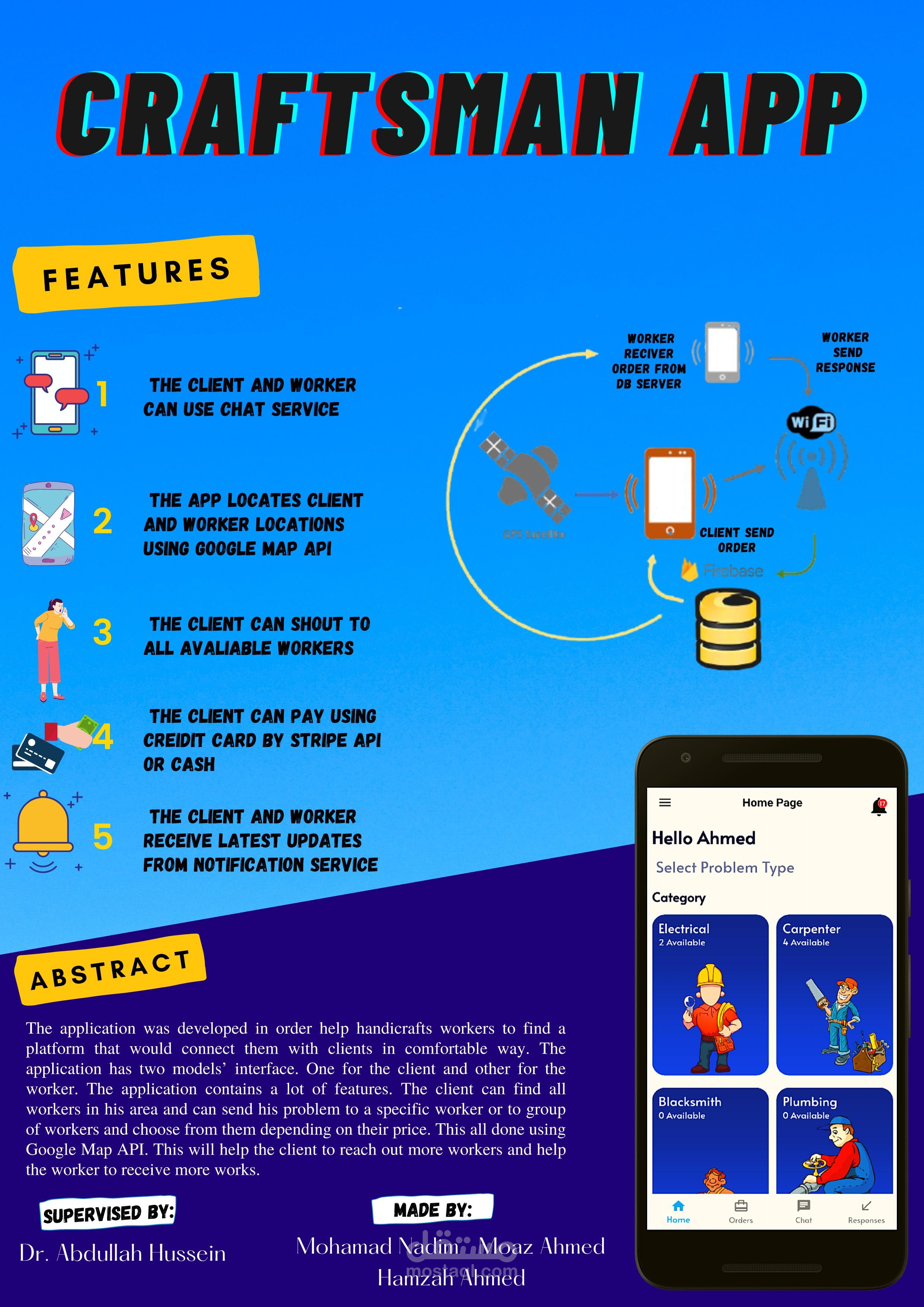 The application was developed in order help handicrafts workers to find a platform that would connect them with clients in comfortable way. The application has two models’ interface. One for the client and other for the worker. The application contains a lot of features. The client can find all workers in his area and can send his problem to a specific worker or to group of workers and choose from them depending on their price. This all done using Google Map API. This will help the client to reach out more workers and help the worker to receive more works.