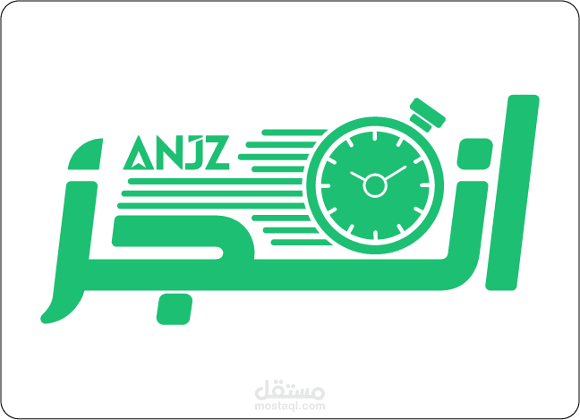 شعار التصميم يجمع بين الحروف العربية واللاتينية ليجسد مفهوم الإنجاز السريع. الساعة التوقيفية المدمجة ترمز إلى الكفاءة وإدارة الوقت، بينما يضفي اللون الأخضر طابعًا محفزًا على الإنتاجية. الشعار يعكس هوية عصرية تدعو المستخدم للتحرك وإنجاز المهام بثقة وسرعة.