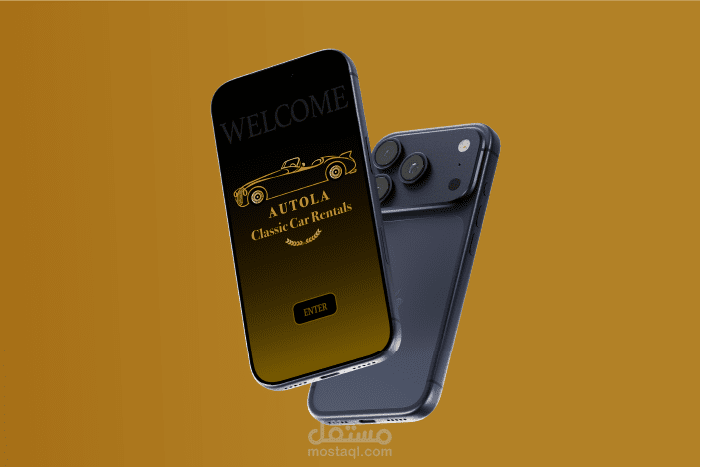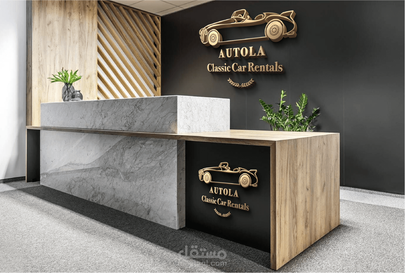 هوية بصرية تم تصميمها بواسطة adobe illustrator لشعار شركة AUTOLA لتأجير السيارات الكلاسيكية.