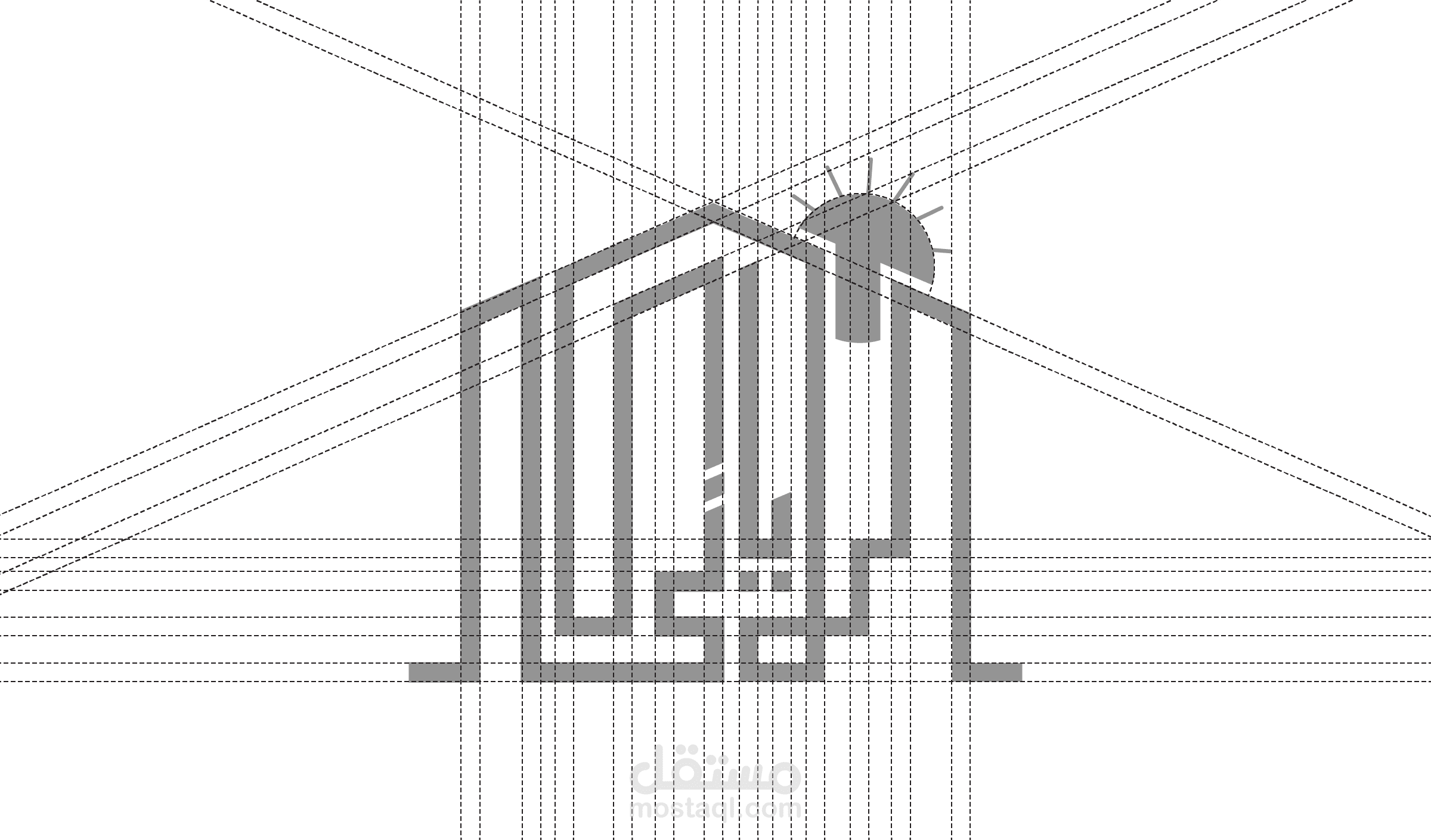 تم اختيار الخط بطريفة انيقة و جذابة و تم الدمج بشكل ايقونة المباني متاخل بها الاسم مما يعزز طابع الشركة و الشكل العام للشعار و يضيف لمسة عصرية.